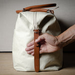 Inspired by advanced sailcloth technology this layered material is durable, resilient, weatherproof and high-tech. The natural organic duck cotton face is combined with a double layer laminate construction to achieve ultimate strength, lightness and weatherproofness. 100% climate neutral.