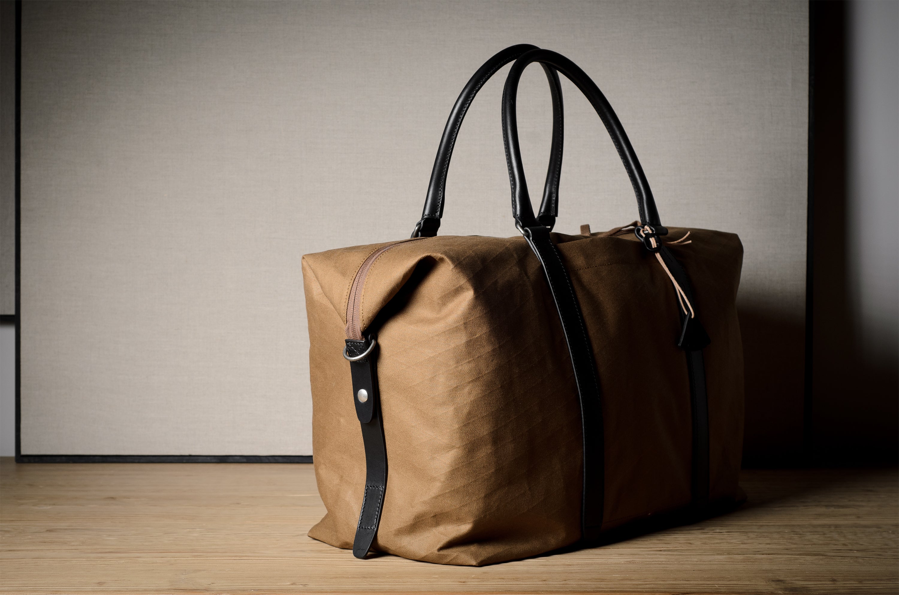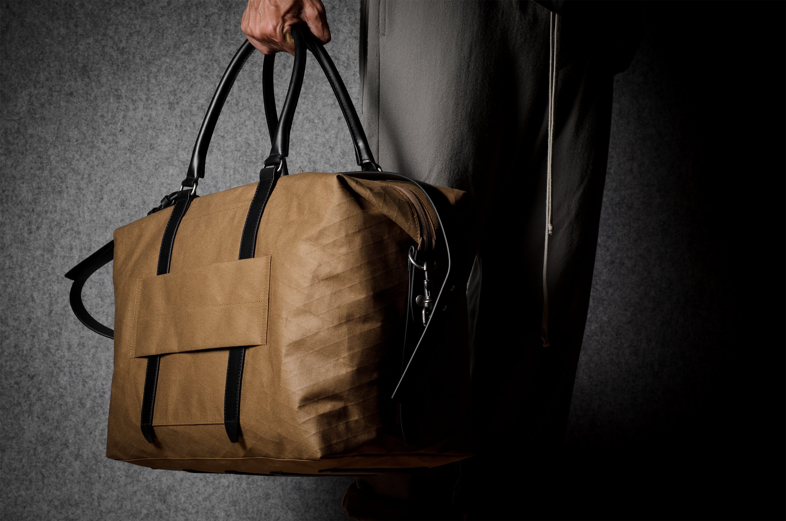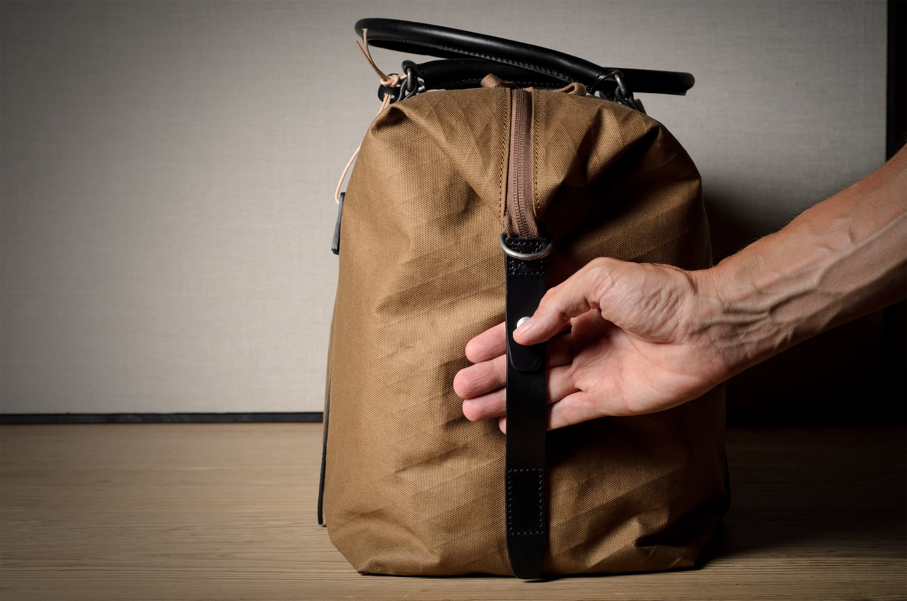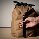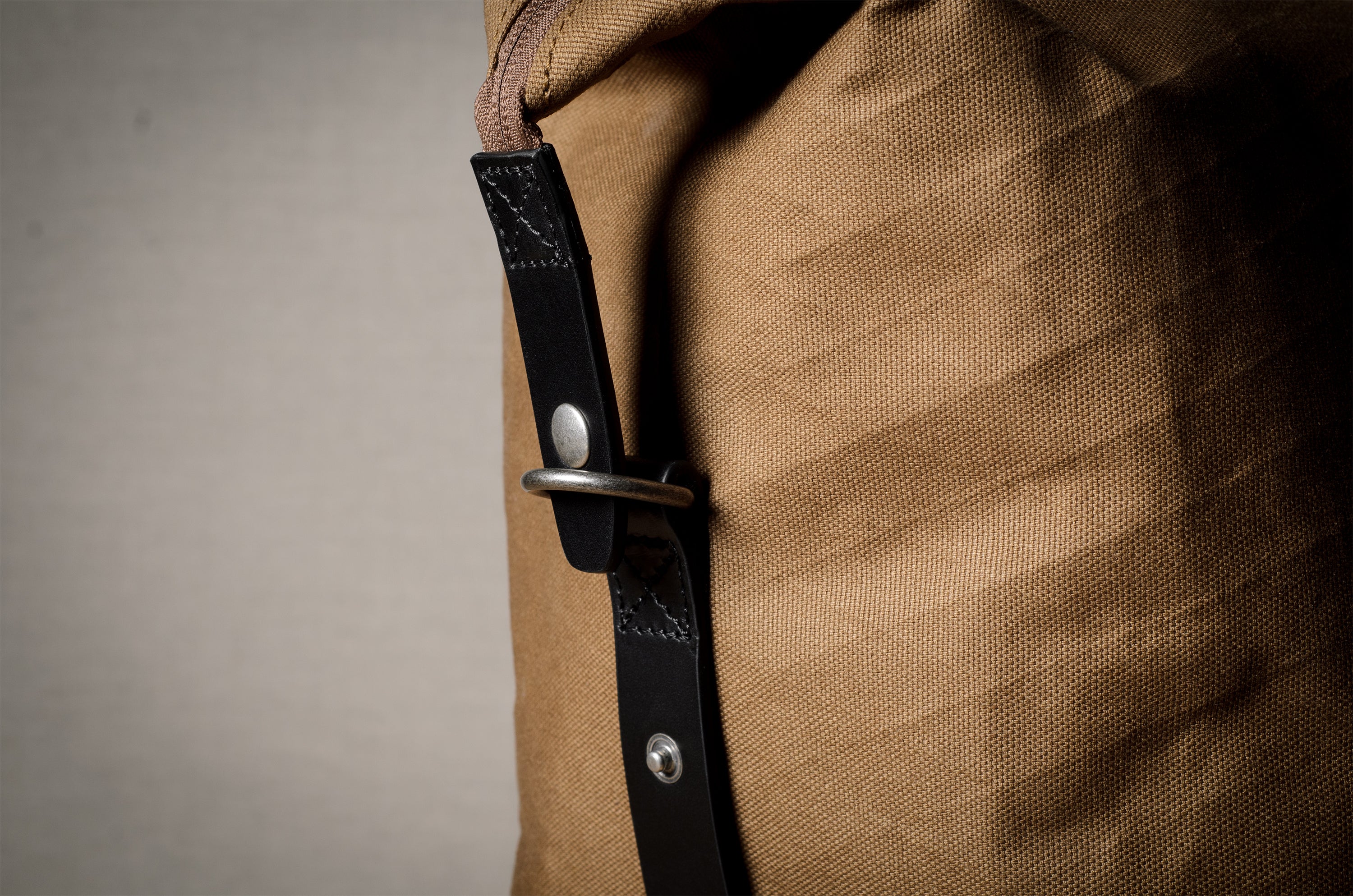 Inspired by advanced sailcloth technology this layered material is durable, resilient, weatherproof and high-tech. The natural organic duck cotton face is combined with a double layer laminate construction to achieve ultimate strength, lightness and weatherproofness. 100% climate neutral.