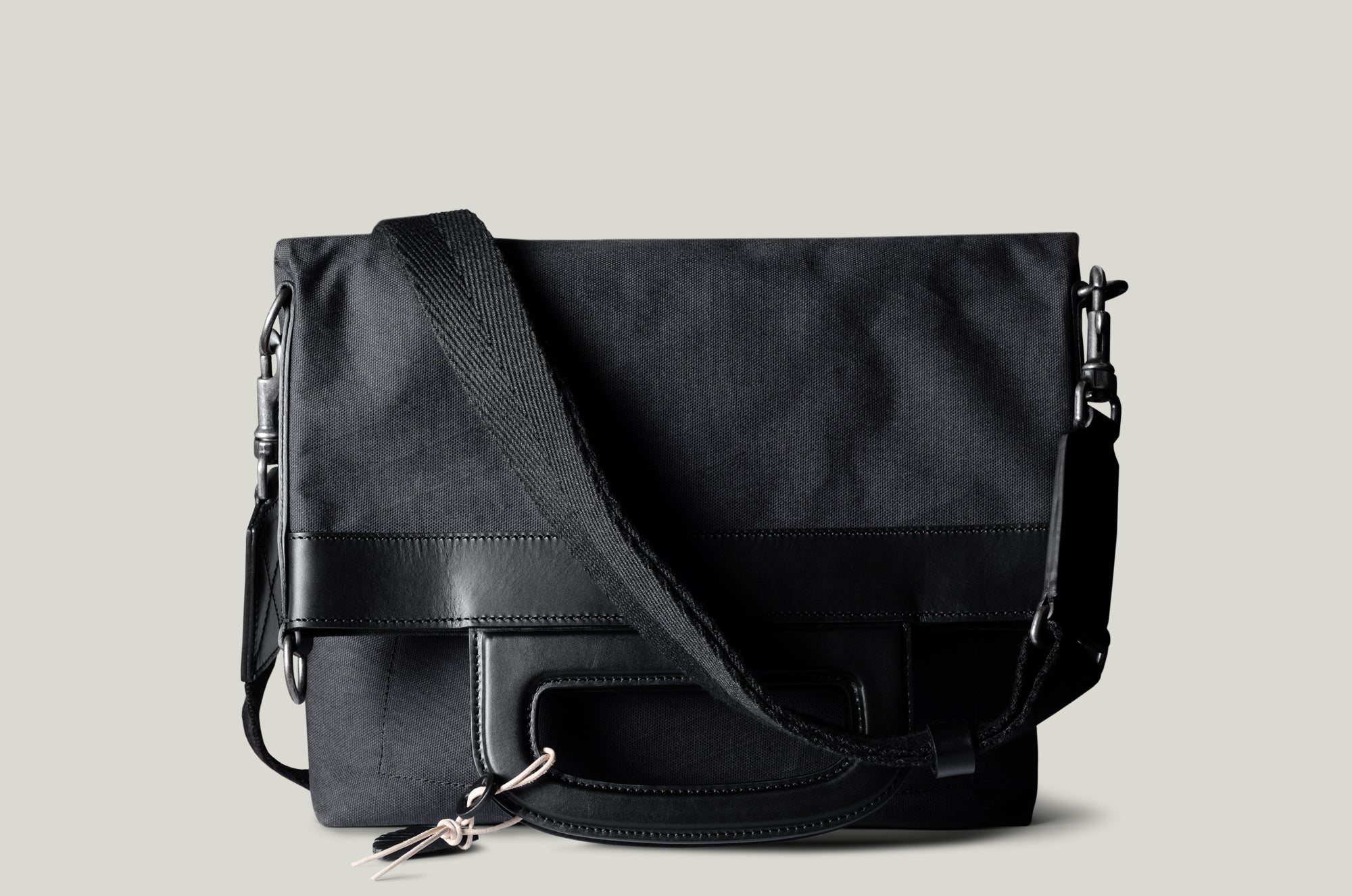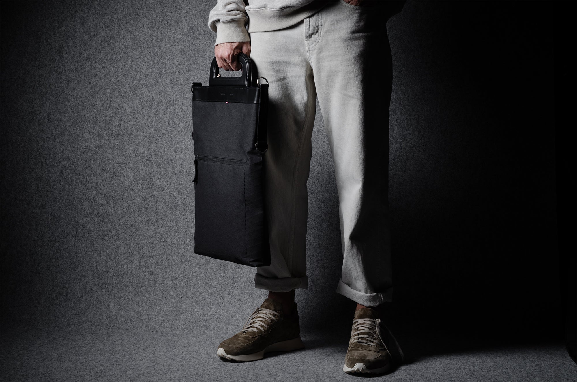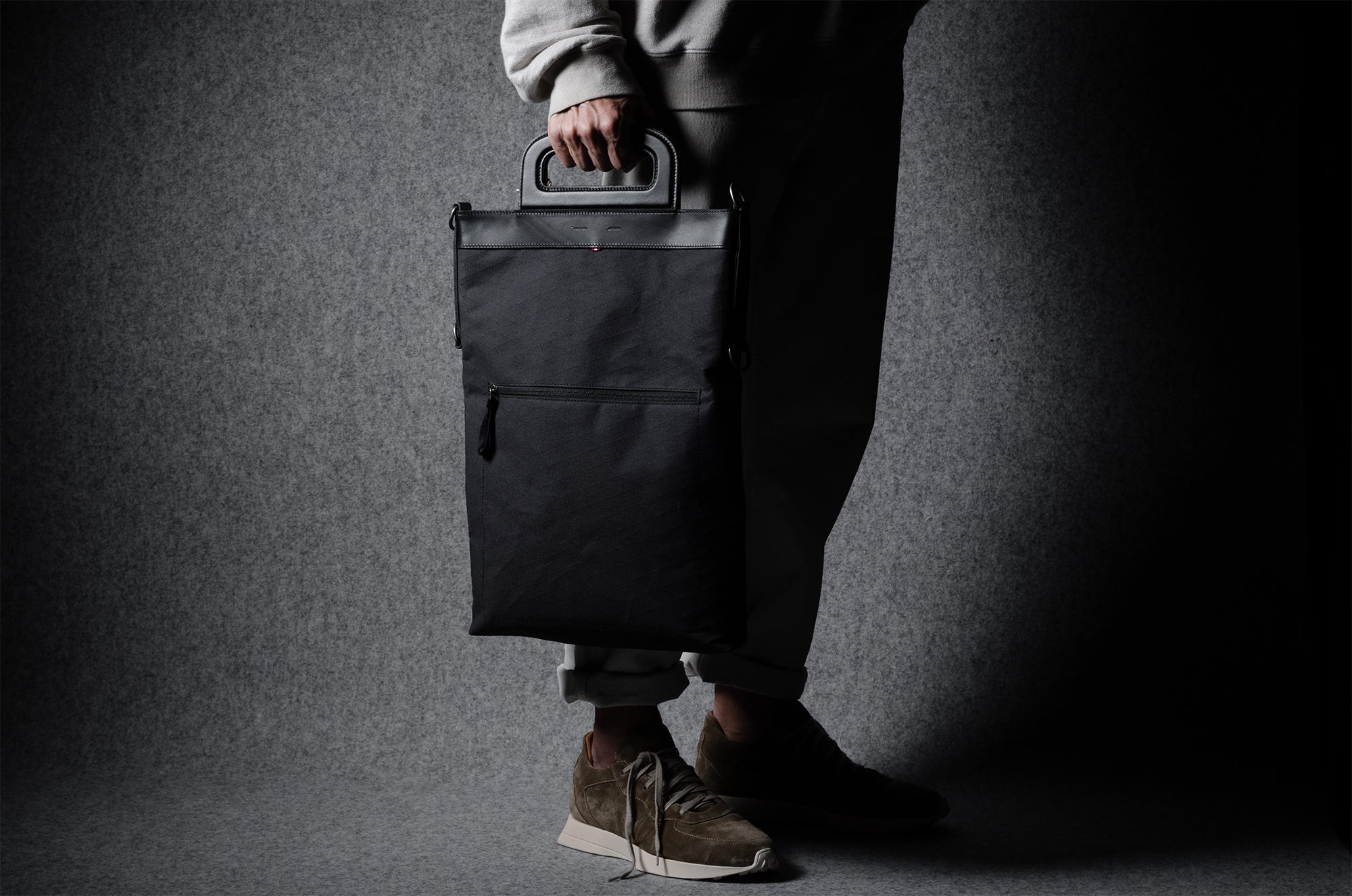Inspired by advanced sailcloth technology this layered material is durable, resilient, weatherproof and high-tech. The natural organic duck cotton face is combined with a double layer laminate construction to achieve ultimate strength, lightness and weatherproofness. 100% climate neutral.