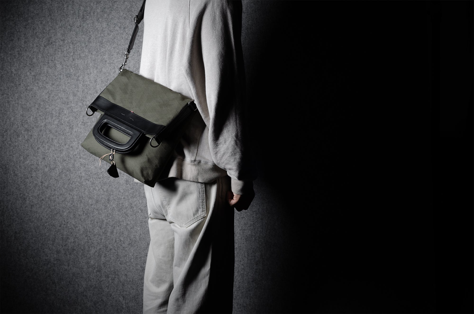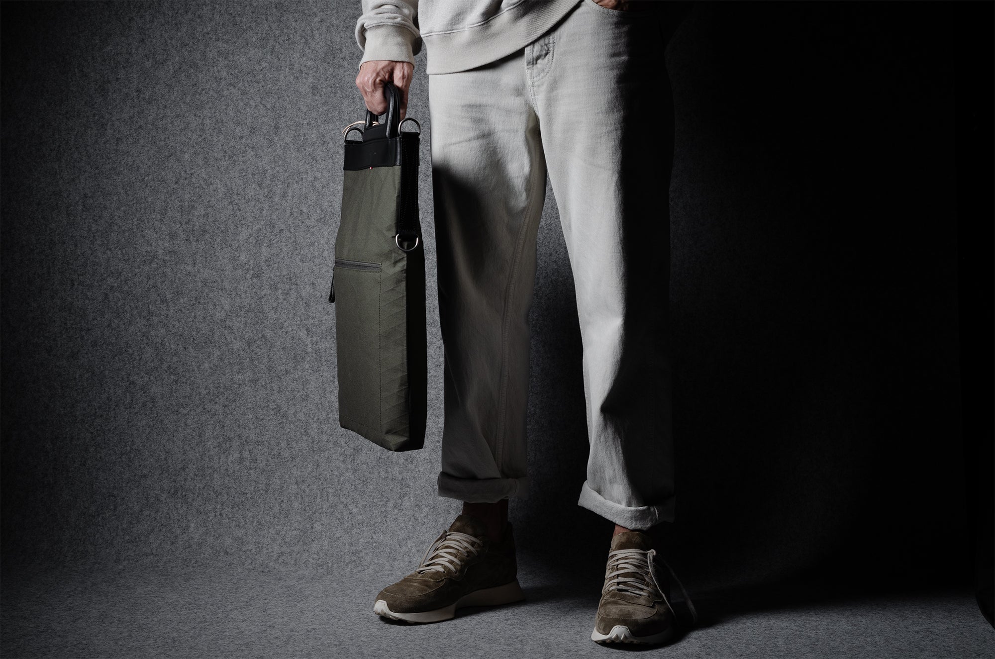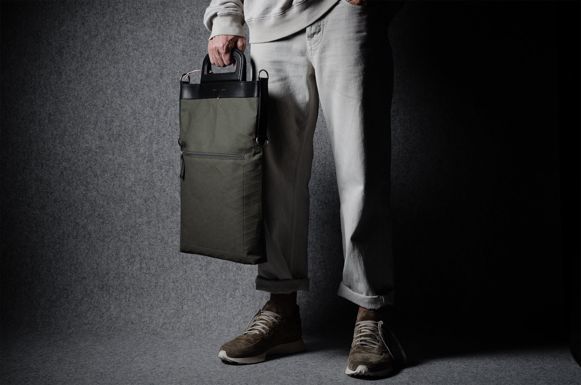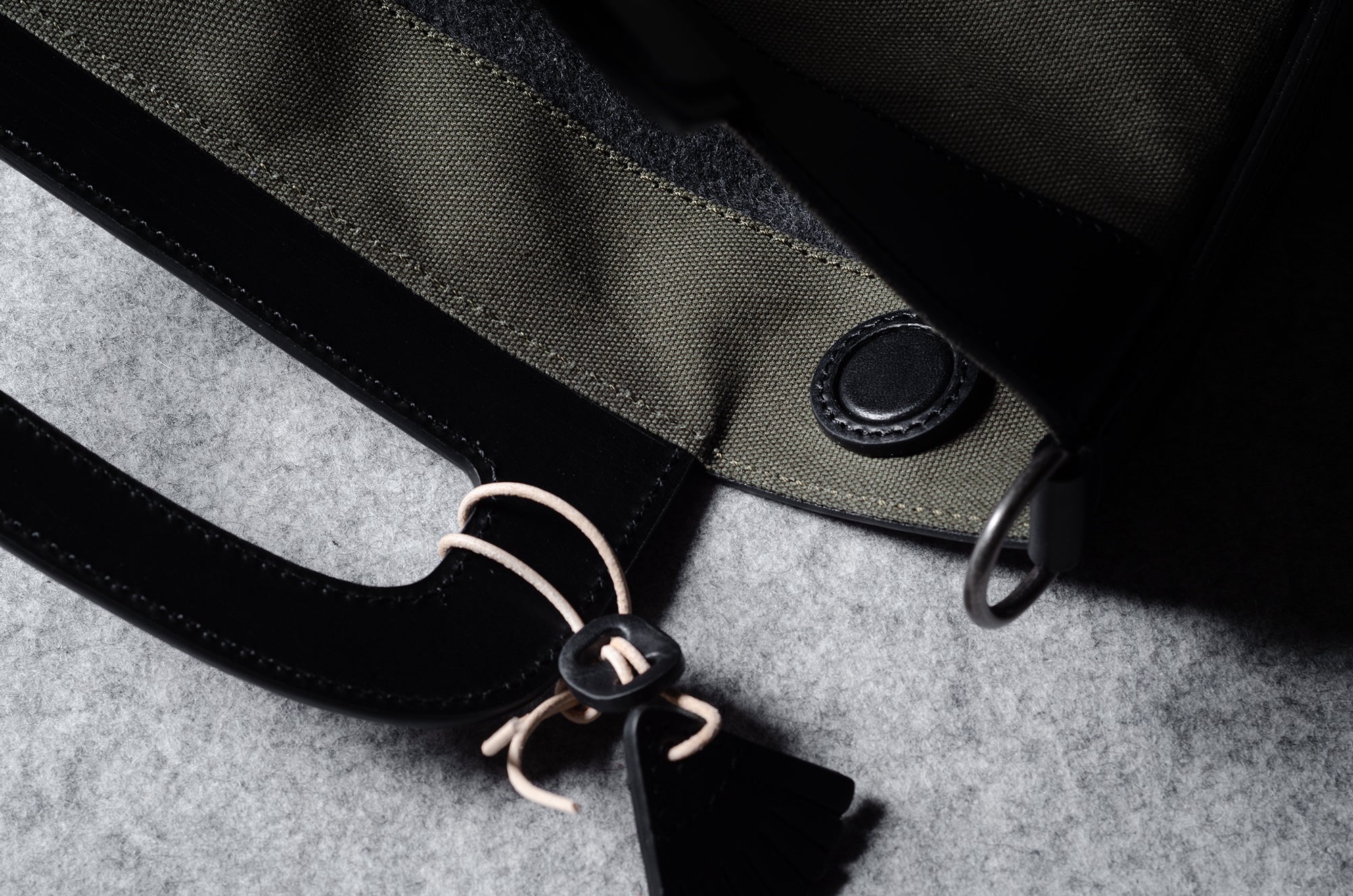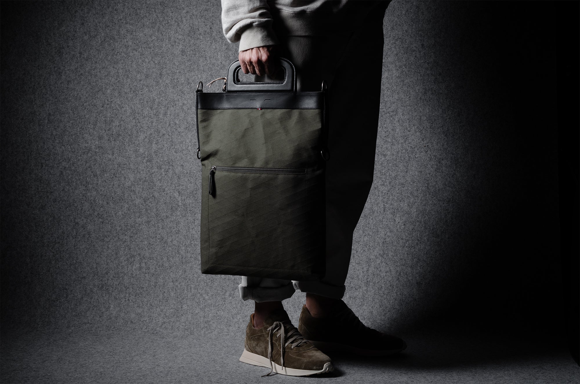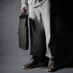 Inspired by advanced sailcloth technology this layered material is durable, resilient, weatherproof and high-tech. The natural organic duck cotton face is combined with a double layer laminate construction to achieve ultimate strength, lightness and weatherproofness. 100% climate neutral.