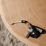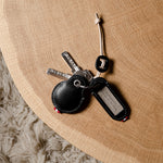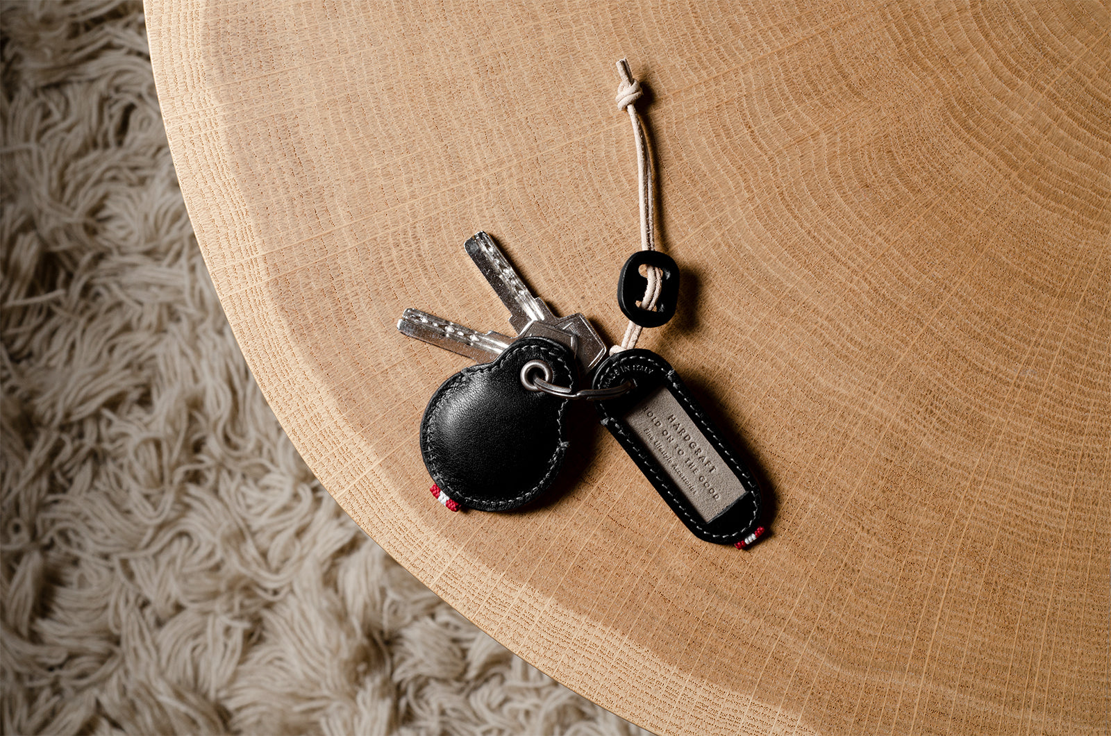 The two-piece key fob consists of a cloud-shaped Apple Airtag holder and a neat leather key tag with a window where you can slip in a little piece of paper with a note/number. Made from vegetable-tanned leather in Italy.