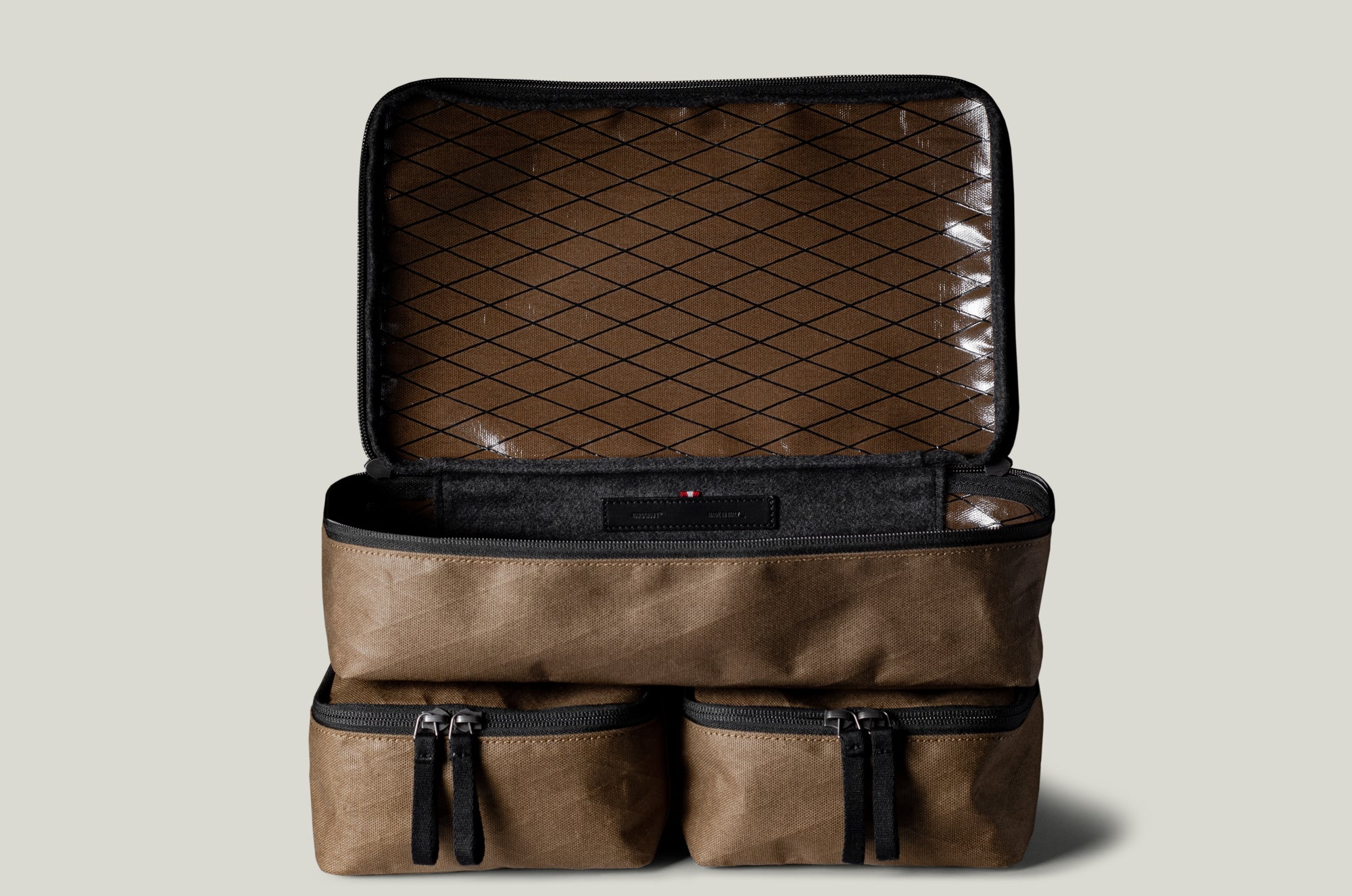 Soft by nature our luxurious Italian wool blend lining adds a tactile and lush interior that almost feels too good to hide away inside the bag. Our natural wool gets a little support from it's stronger and very resilient man-made fibres to stand up to whatever you throw into it.