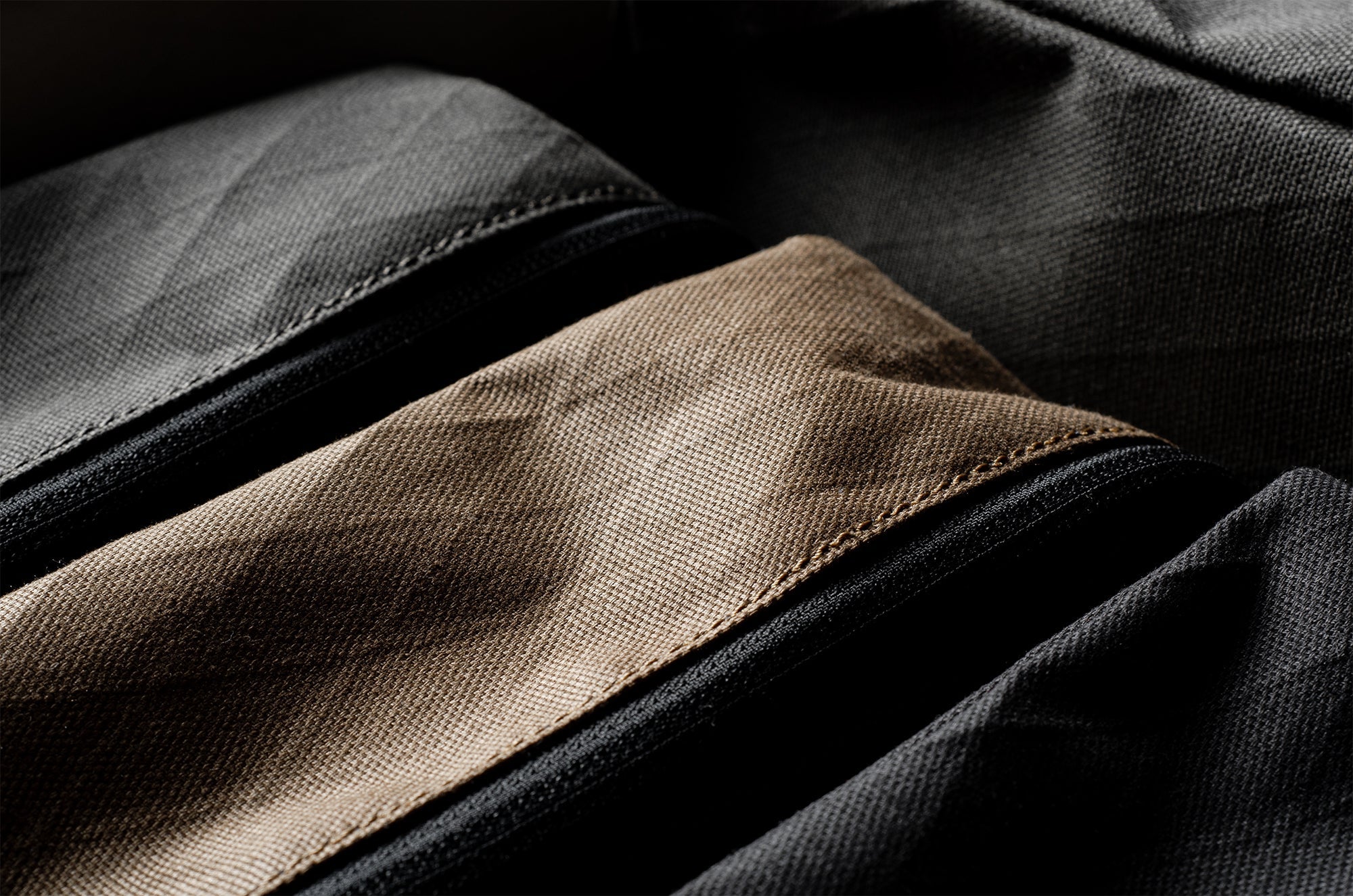 Inspired by advanced sailcloth technology this layered material is durable, resilient, weatherproof and high-tech. The natural organic duck cotton face is combined with a double layer laminate construction to achieve ultimate strength, lightness and weatherproofness. 100% climate neutral.