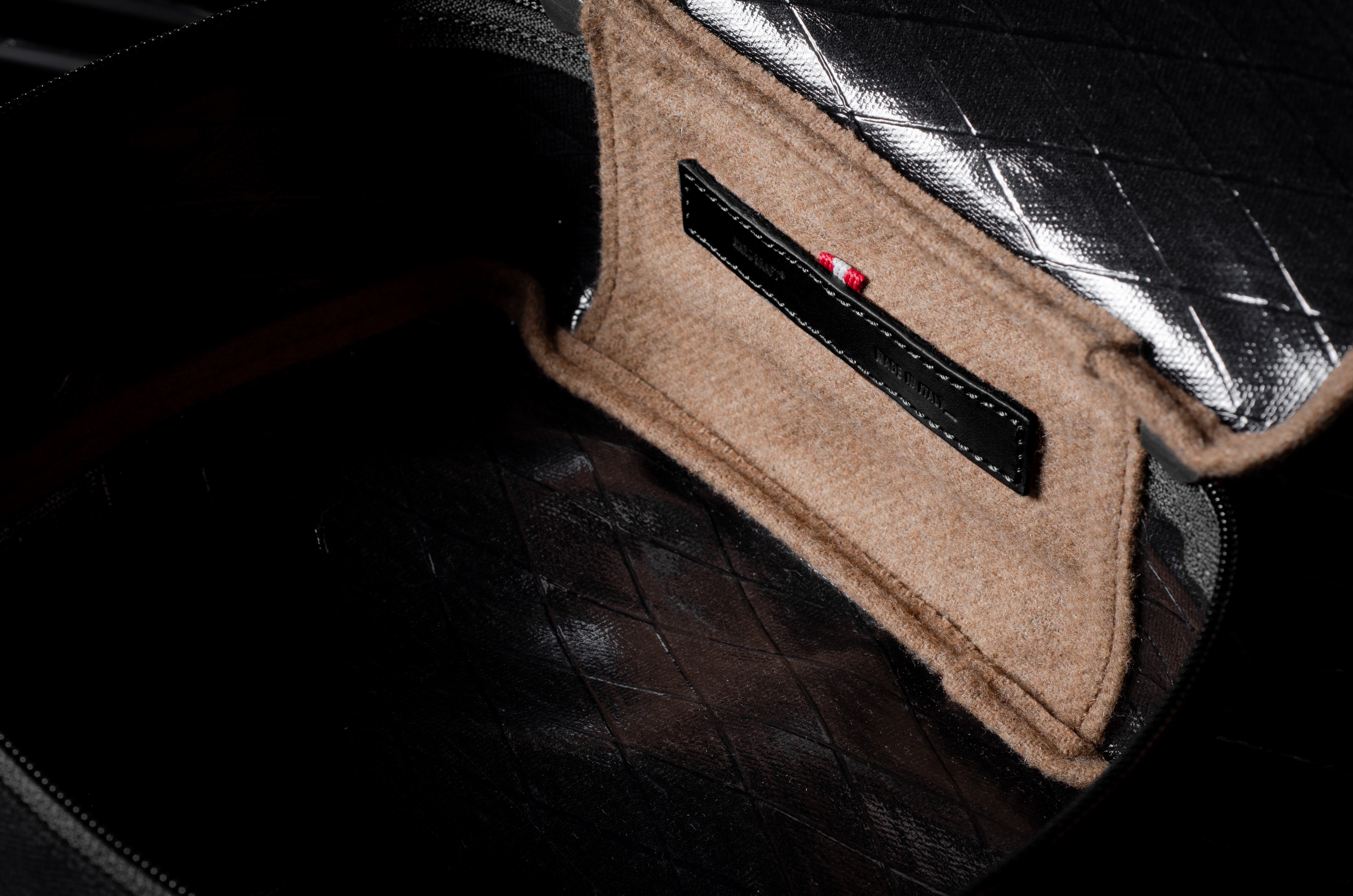 Soft by nature our luxurious Italian wool blend lining adds a tactile and lush interior that almost feels too good to hide away inside the bag. Our natural wool gets a little support from it's stronger and very resilient man-made fibres to stand up to whatever you throw into it.