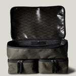 Inspired by advanced sailcloth technology this layered material is durable, resilient, weatherproof and high-tech. The natural organic duck cotton face is combined with a double layer laminate construction to achieve ultimate strength, lightness and weatherproofness. 100% climate neutral.
