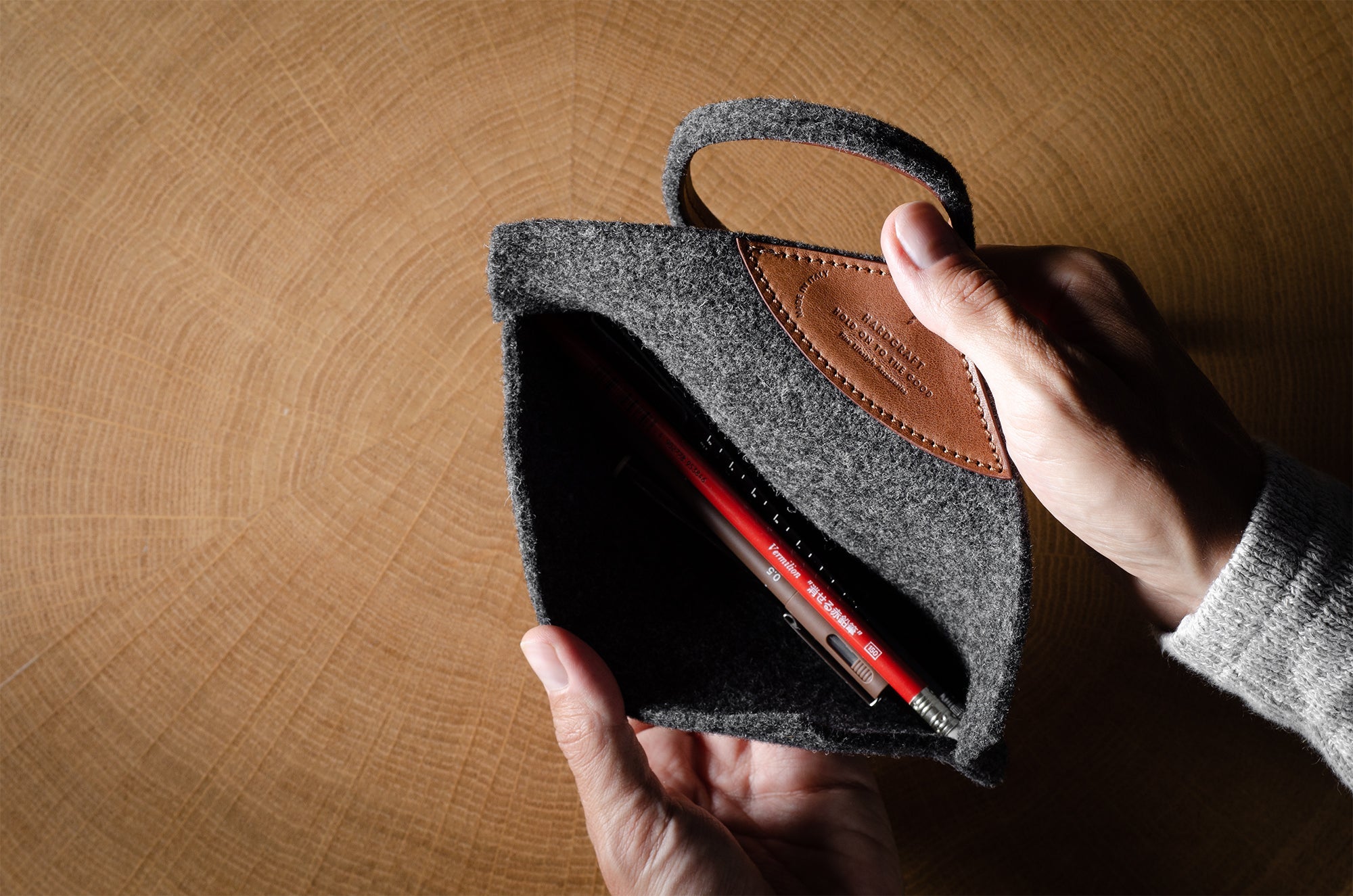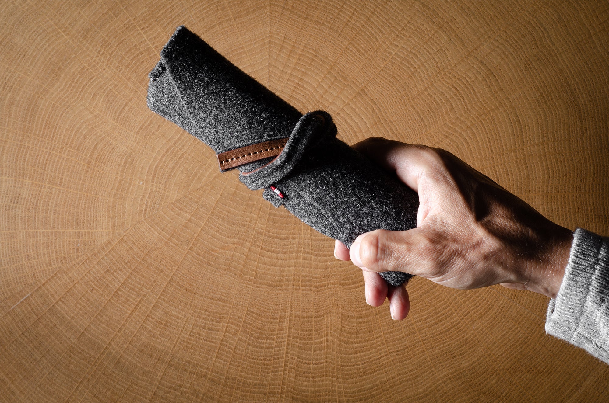 Diese gefilzte Wolle und das hochwertige, pflanzlich gegerbte Material lassen sich zusammenrollen und bieten Platz für bis zu 10 Stifte, einschließlich Ihres Apple Pencil . Das ist Wabi-Sabi pur, ohne Steifheit, ohne komplizierte Konstruktion, mit genau den richtigen Nähten, damit Sie die weiche Wolle um Ihre Schreibgeräte wickeln und sie mit dem Woll- und Lederband bequem festziehen können. Einfach zu verwenden, schlicht in seiner Ausführung . Maße: ca. 21 x 6 x 3 cm . Hergestellt in Italien von unserer kleinen Handwerkswerkstatt mit einem Hauch von Magie.