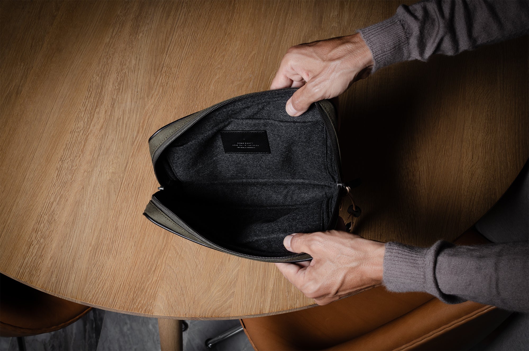 Unser luxuriöses Innenfutter aus italienischer Wollmischung ist von Natur aus weich und sorgt für ein haptisches und üppiges Innenleben, das sich fast zu gut anfühlt, um es in der Tasche zu verstecken. Unsere natürliche Wolle erhält durch ihre stärkeren und sehr widerstandsfähigen Kunstfasern ein wenig Halt, damit sie allem standhält, was Sie hineinwerfen.