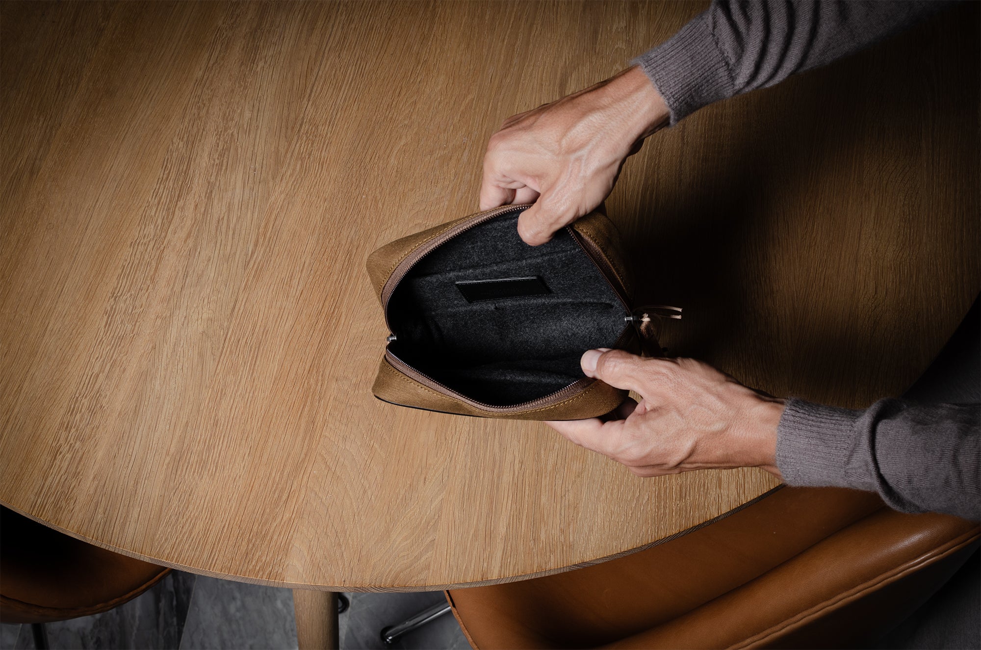 Unser luxuriöses Innenfutter aus italienischer Wollmischung ist von Natur aus weich und sorgt für ein haptisches und üppiges Innenleben, das sich fast zu gut anfühlt, um es in der Tasche zu verstecken. Unsere natürliche Wolle erhält durch ihre stärkeren und sehr widerstandsfähigen Kunstfasern ein wenig Halt, damit sie allem standhält, was Sie hineinwerfen.