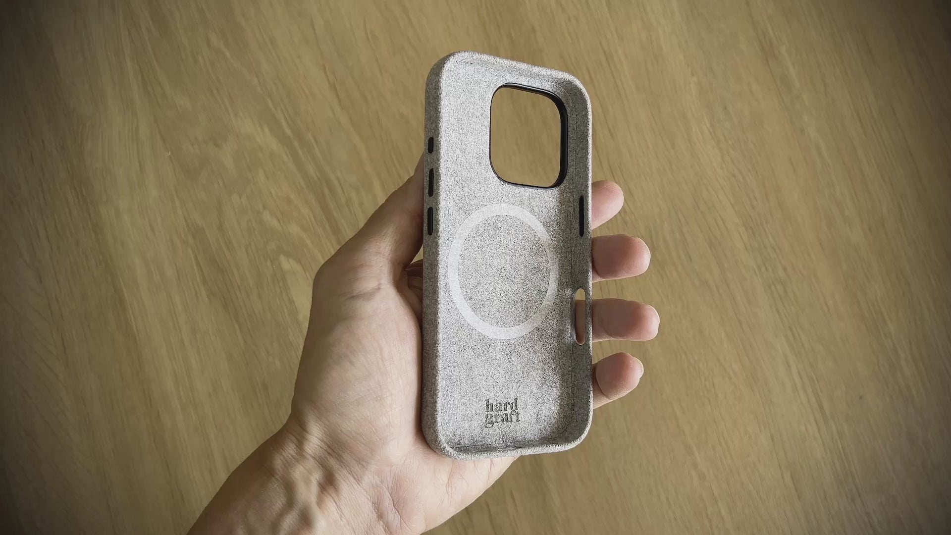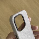 Das aufsteckbare Fuzzy Alcantara iPhone Cover ist mit hochwertigem, strapazierfähigem, veganem italienischem Alcantara überzogen und haftet perfekt auf Ihrem iPhone. Der erhöhte Rand schützt das Display, wenn es mit der Vorderseite nach unten liegt, während die Metallumrandung die Kamera schützt. Innen ist das Alcantara durchgehend und bedeckt das Cover vollständig. Das Hardgraft-Logo ist auf der Innenseite unterhalb des MagSafe-Bereichs eingeprägt. Sie müssen das Cover nie abnehmen, auch nicht beim kabellosen Laden über MagSafe .