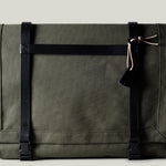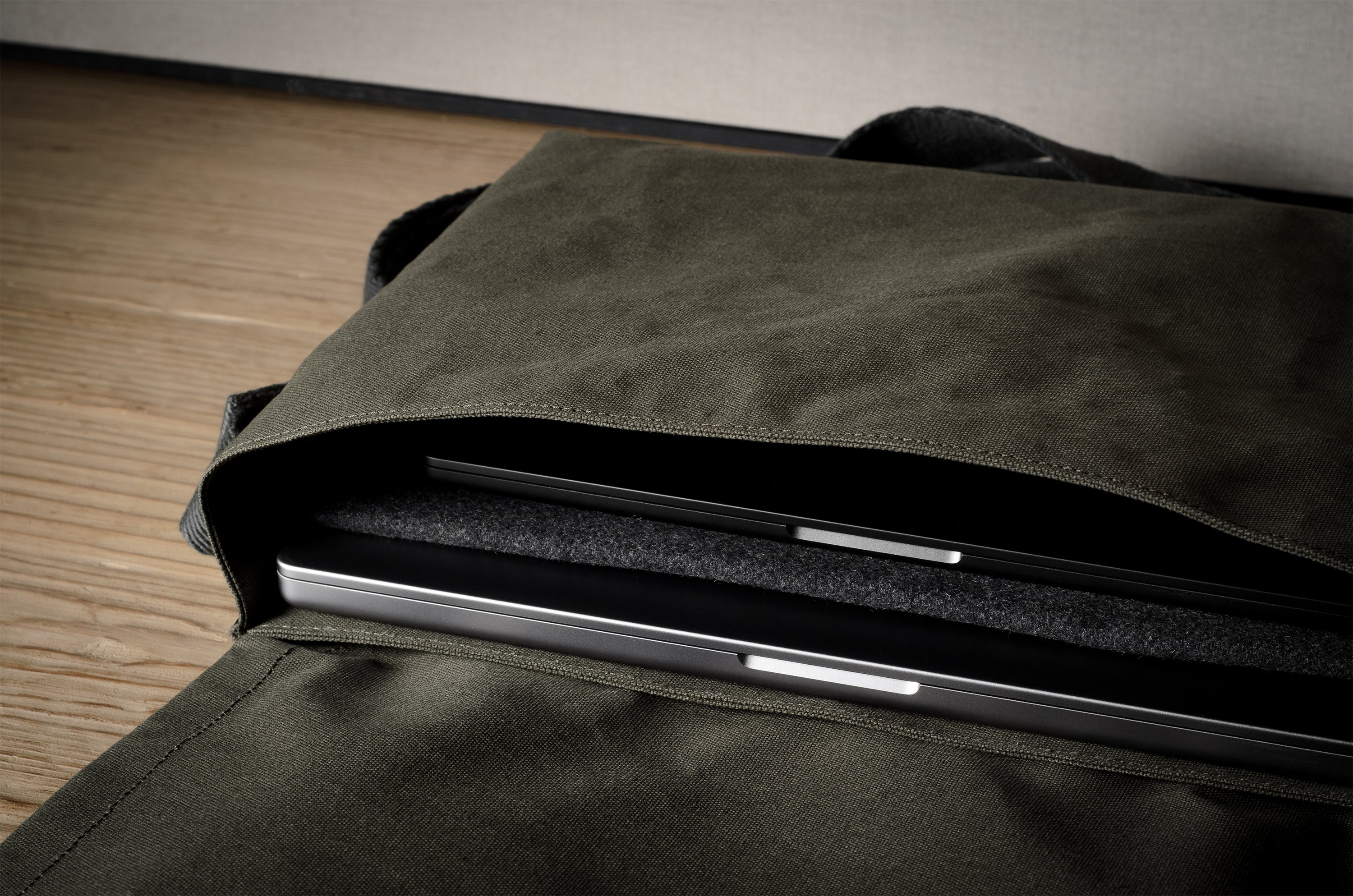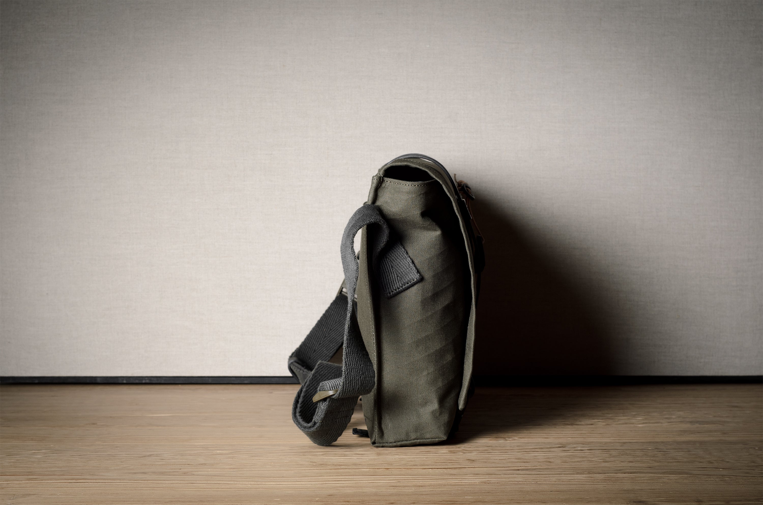 Inspired by advanced sailcloth technology this layered material is durable, resilient, weatherproof and high-tech. The natural organic duck cotton face is combined with a double layer laminate construction to achieve ultimate strength, lightness and weatherproofness. 100% climate neutral.