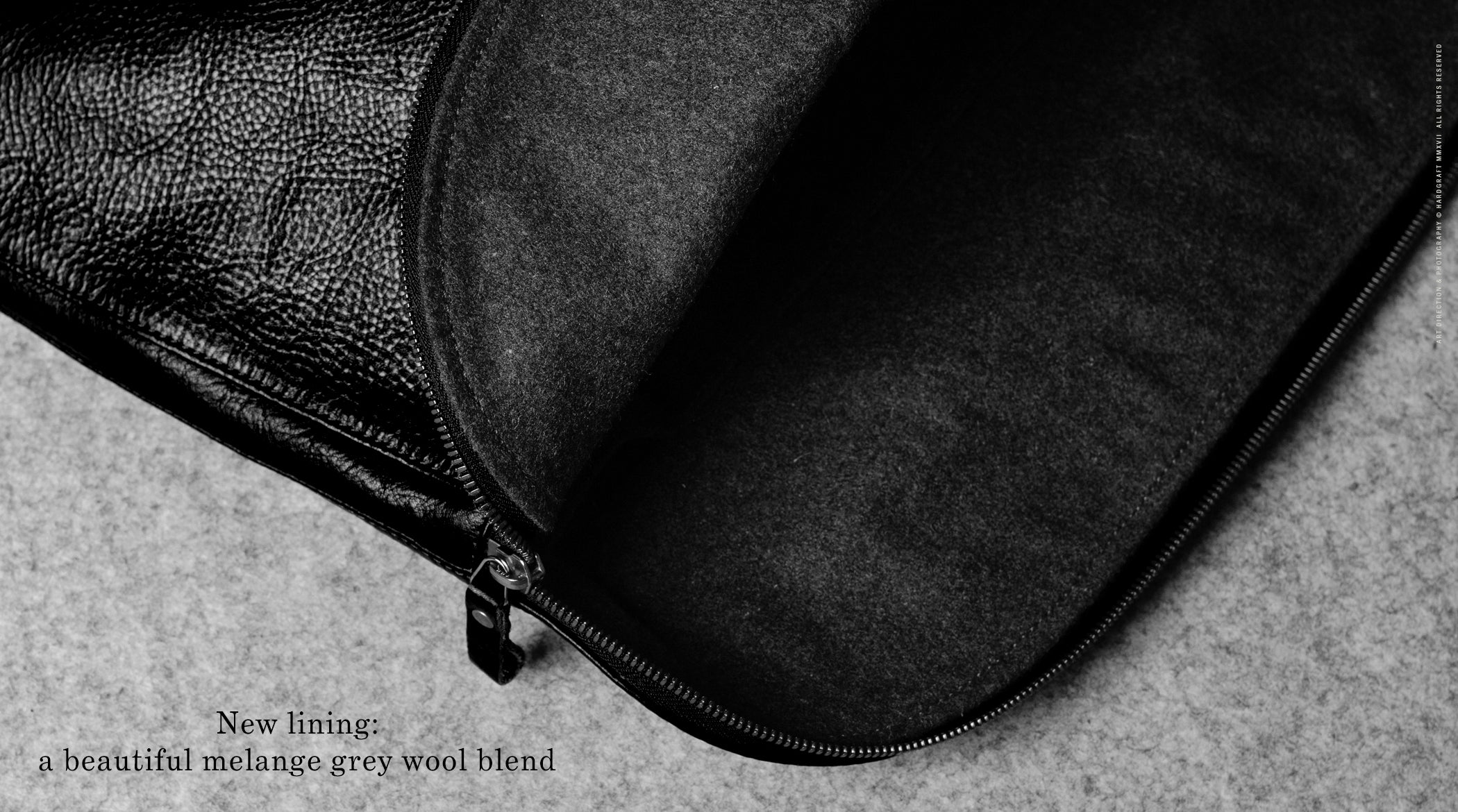 Soft by nature our luxurious Italian wool blend lining adds a tactile and lush interior that almost feels too good to hide away inside the bag. Our natural wool gets a little support from it's stronger and very resilient man-made fibres to stand up to whatever you throw into it.