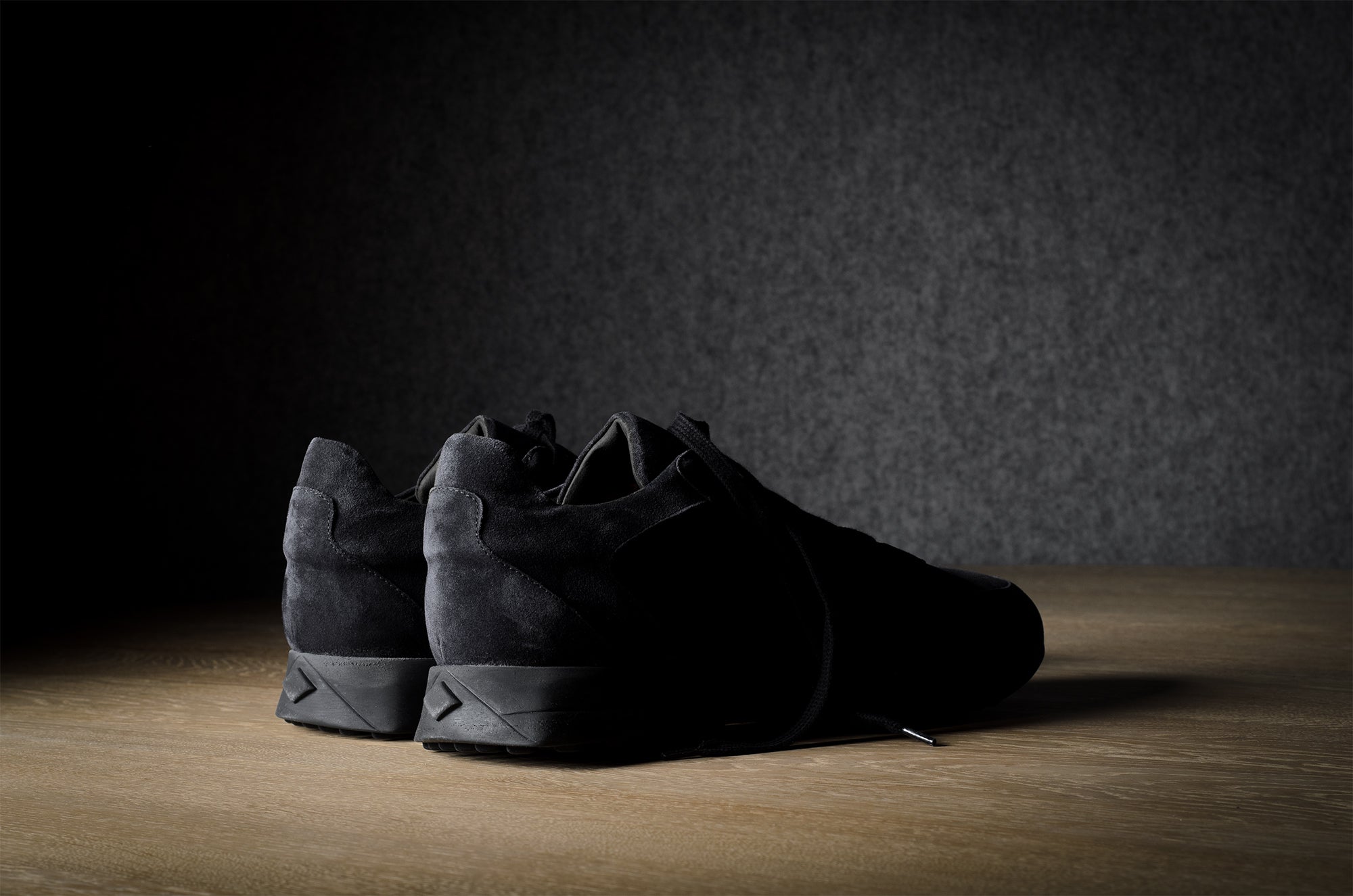 Der R1 Sneaker orientiert sich an einem modernen Laufschuh, bleibt aber mit seinen handgefertigten Techniken und nichttechnischen Materialien fest in der Werkstatt verankert. Lebe langsam und gehe, renne nicht.