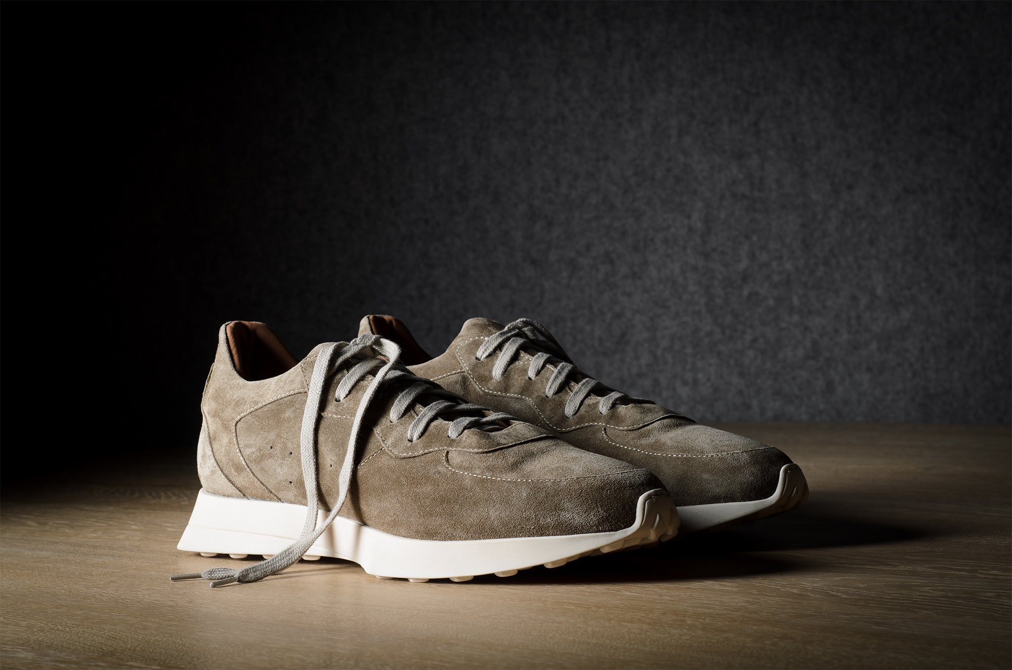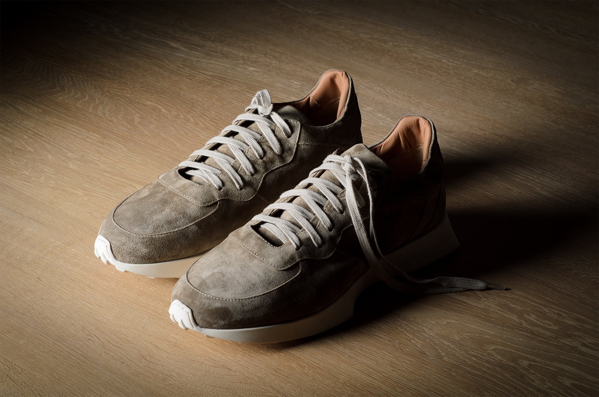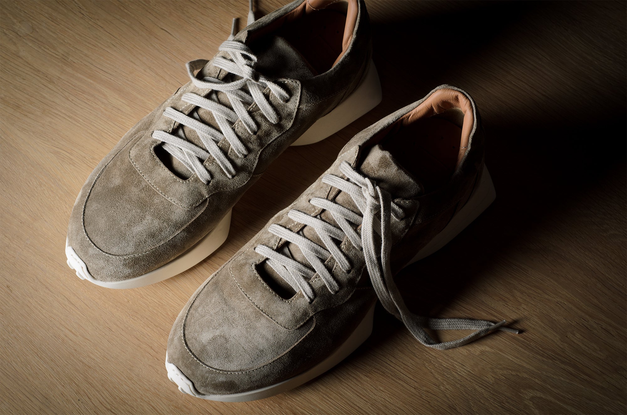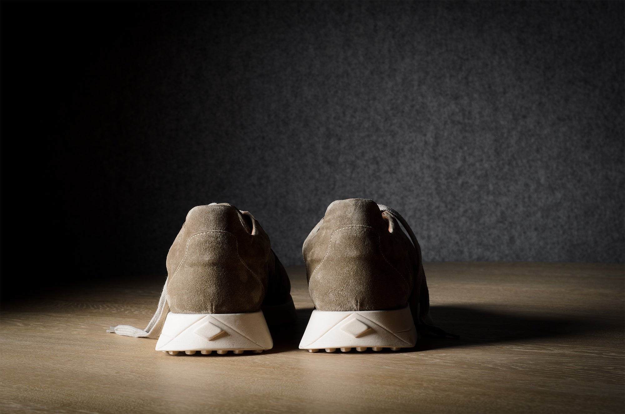 The R1 Sneaker takes its cue from a modern running shoe, yet stays firmly grounded in the workshop with its handcrafted techniques and non-technical materials. Live slow and walk, don't run.