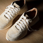 Hergestellt in Italien aus weichem, hochwertigem italienischem Wildleder und gefüttert mit pflanzlich gegerbtem Kalbsleder. Ein handwerklich gefertigter Sneaker mit menschlicher Note . Ausgestattet mit Naturkautschuksohlen, die in Frankreich aus reiner Hevea-Milch hergestellt und veredelt wurden, um einzigartige Sohlen voller winziger Luftbläschen zu schaffen, die unübertroffenen Komfort bieten.