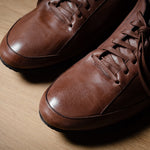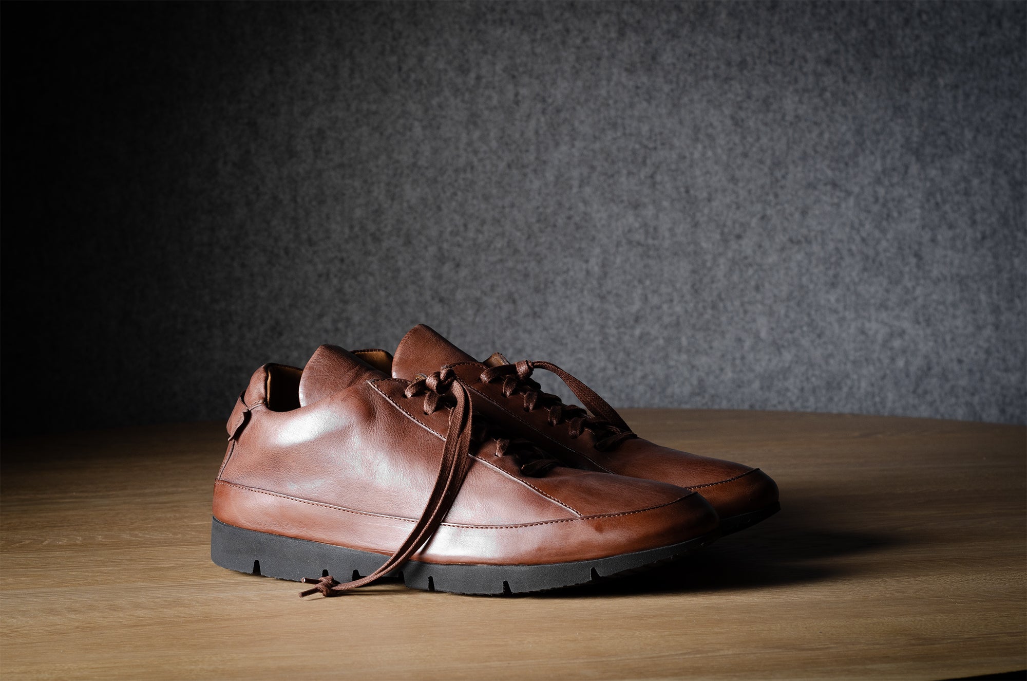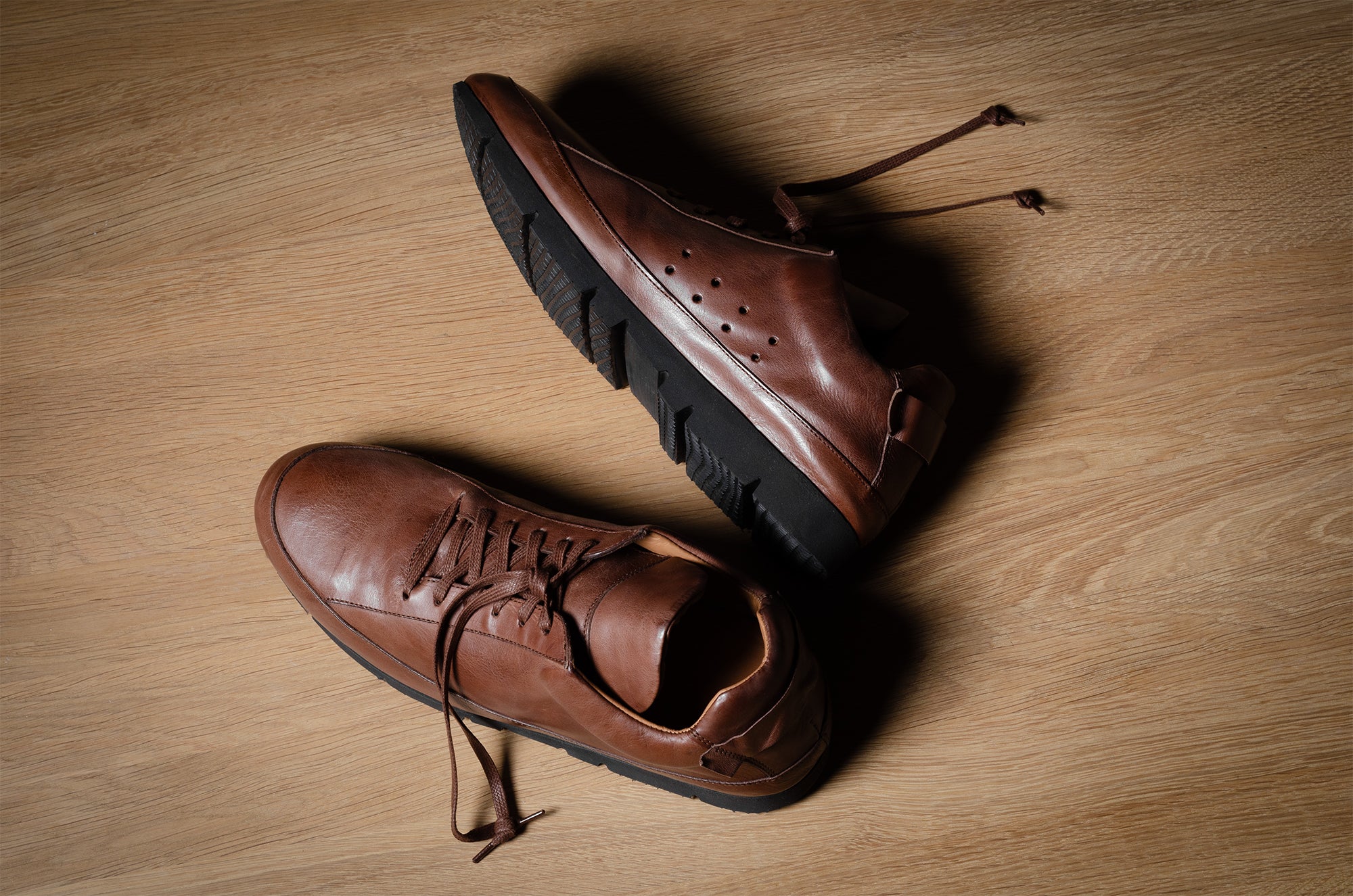 The silhouette of the S3 Sneaker is loosely inspired by the modern running sneaker. We've created an ultralight sneaker by crafting it out of soft Italian top grain vegetable tanned calfskin leather. The Italian made EVA sole is light but durable, the insole has added comfort in the heel and where the foot needs the most support. Your feet are surrounded with extra thick padding in the most important places. If you wish to walk (or run) on clouds - the S3 is a dream option.