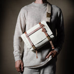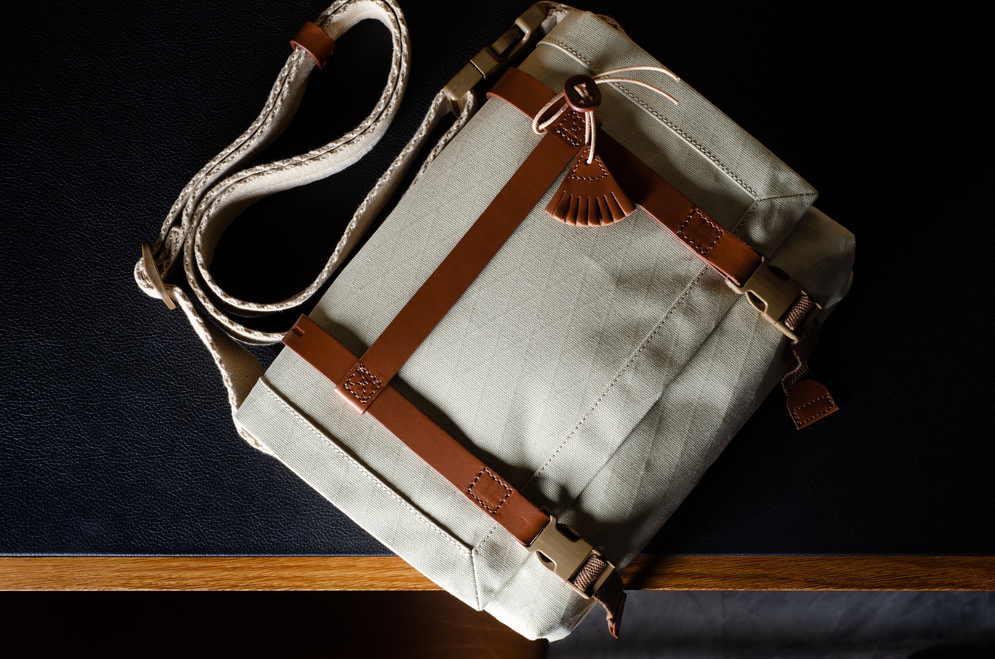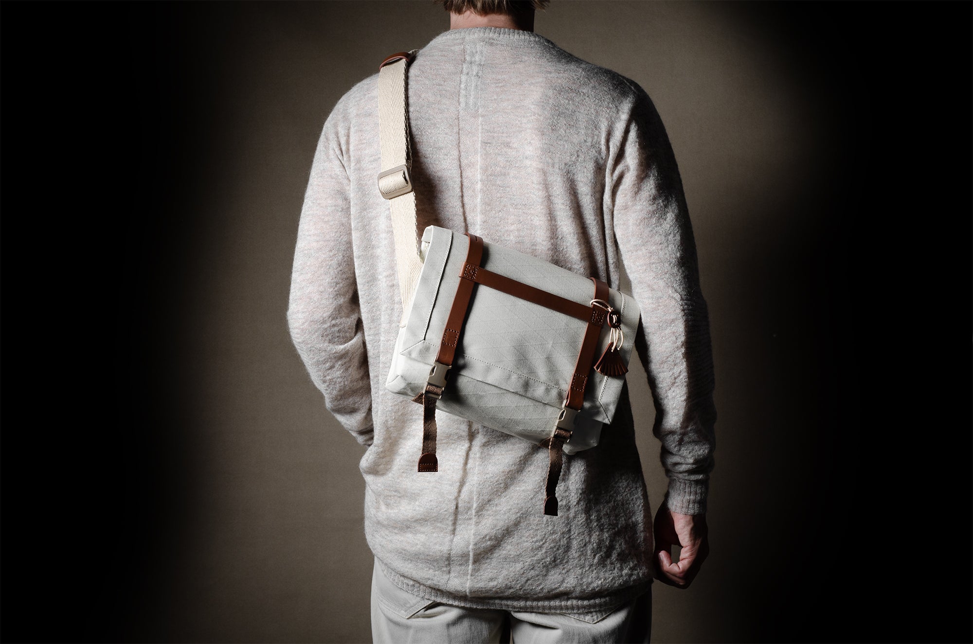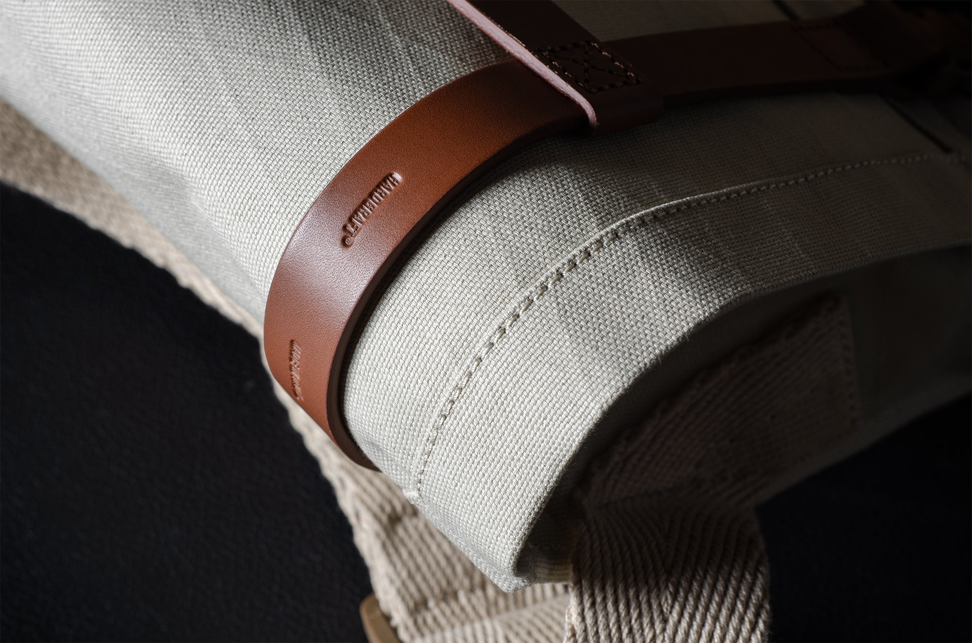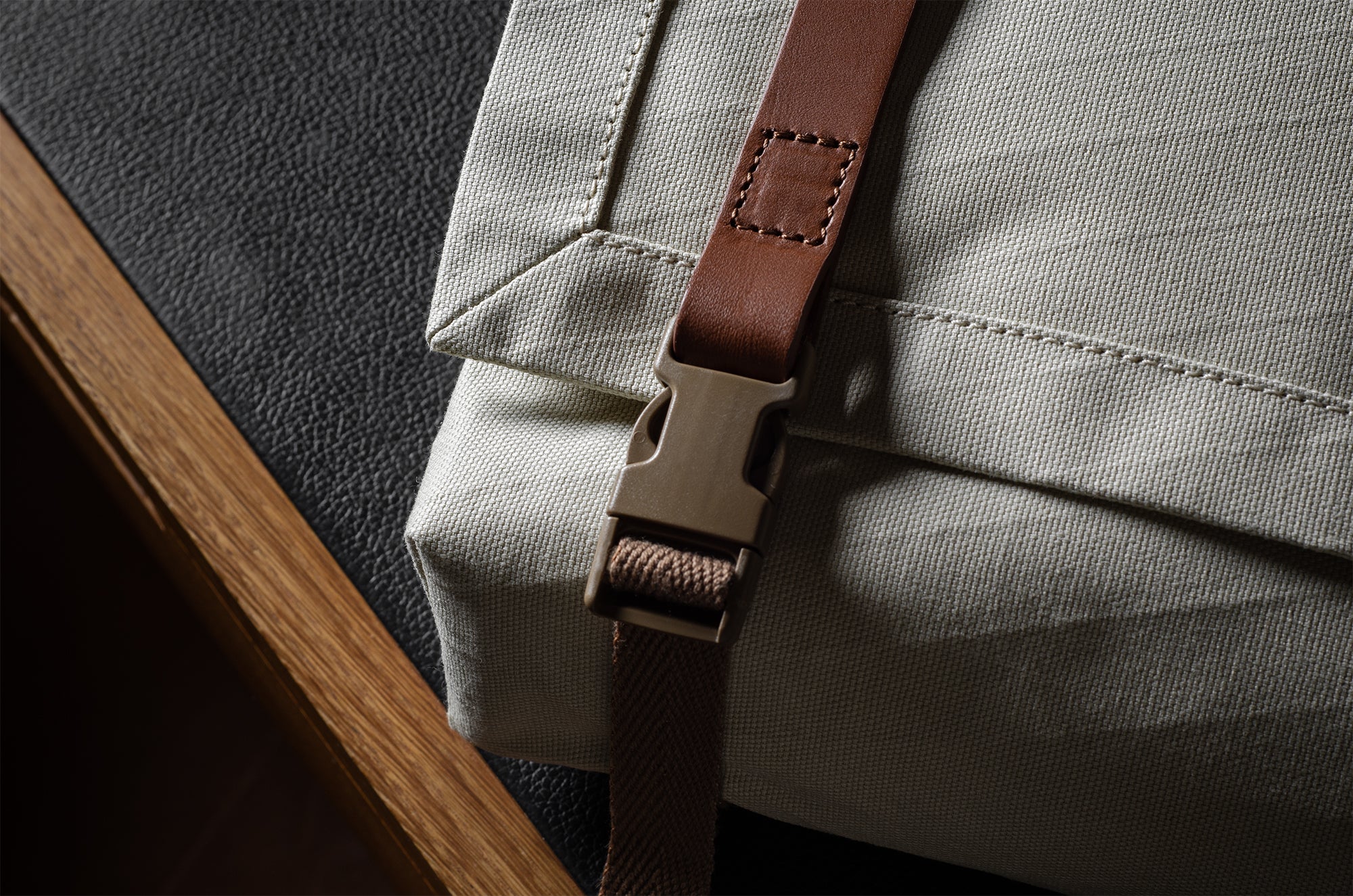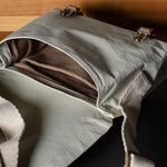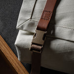 Inspired by advanced sailcloth technology this layered material is durable, resilient, weatherproof and high-tech. The natural organic duck cotton face is combined with a double layer laminate construction to achieve ultimate strength, lightness and weatherproofness. 100% climate neutral.