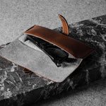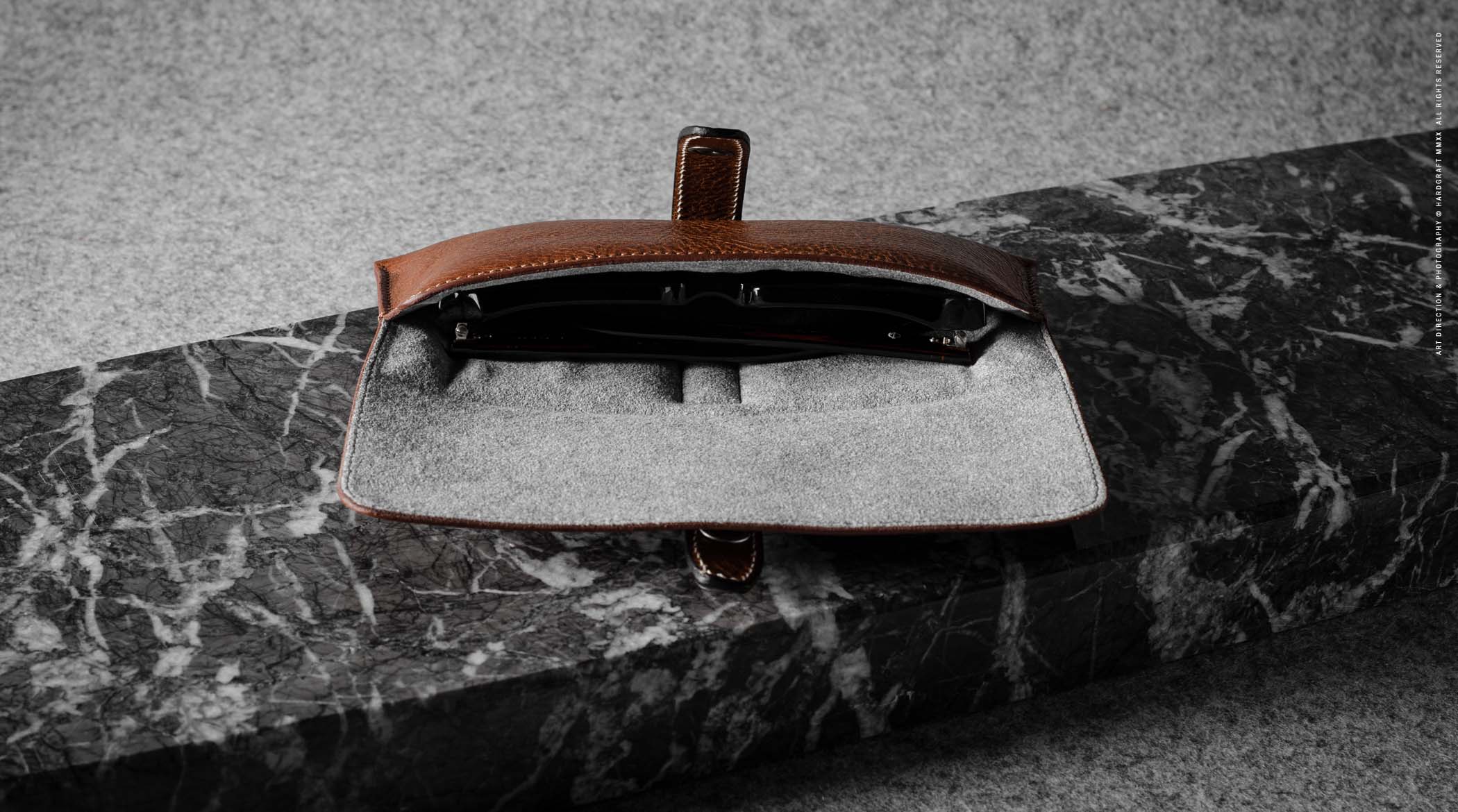 Das Pillow Eyewear Case hält Ihre wertvolle Brille, wenn Sie sie nicht auf Ihrem Gesicht tragen. Diese relativ kompakte Hülle ist klein, schlank , weich und praktisch . Gefüttert mit dem glattesten Alcantara , gepolstert an den richtigen Stellen. Das Gehäuse schließt mit einem externen Druckknopf , der an einem externen Riemen befestigt ist. Reichhaltiges pflanzlich gegerbtes italienisches Leder umhüllt das Äußere mit den bekannten Hardgraft-Akzenten und Nähten. Handwerker hergestellt in Italien.