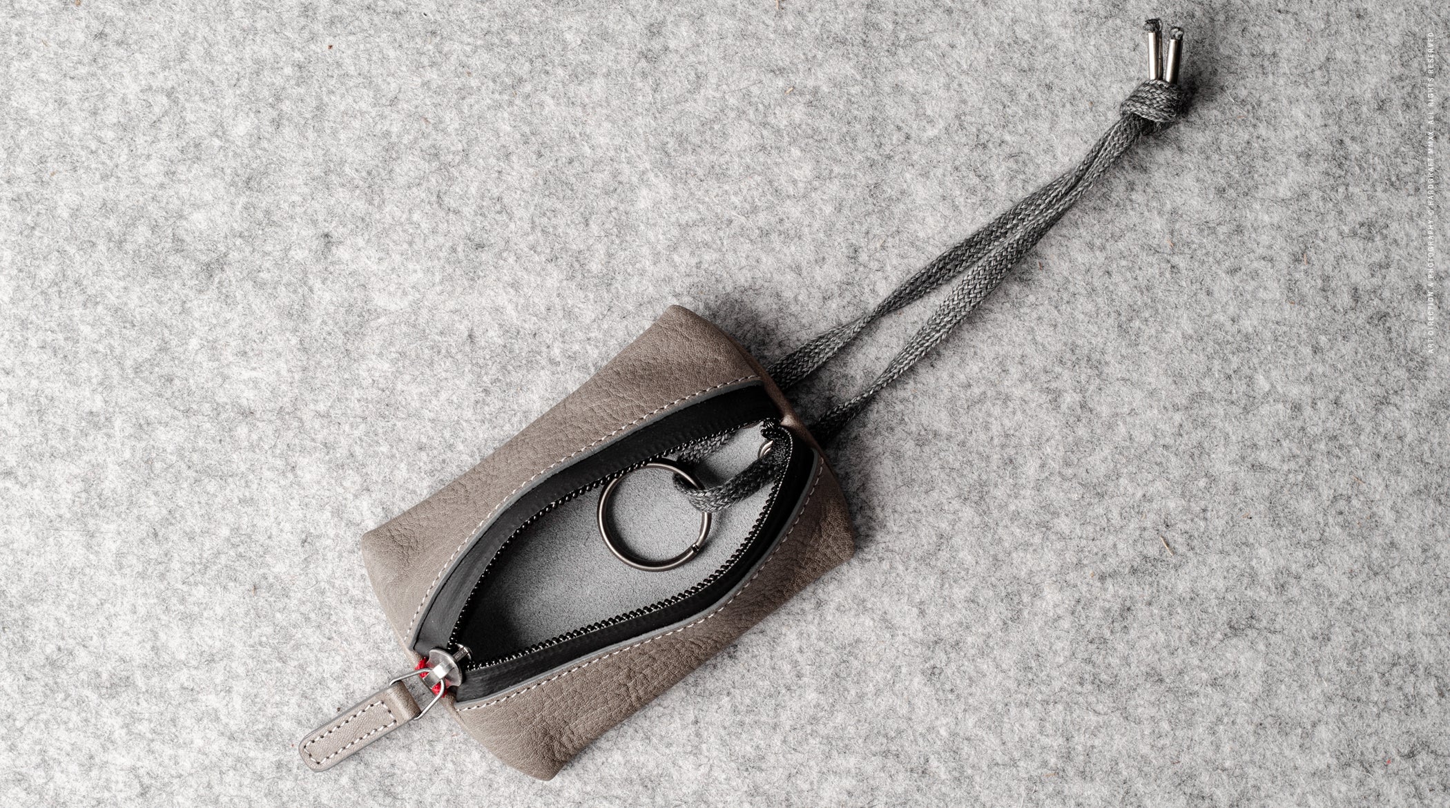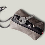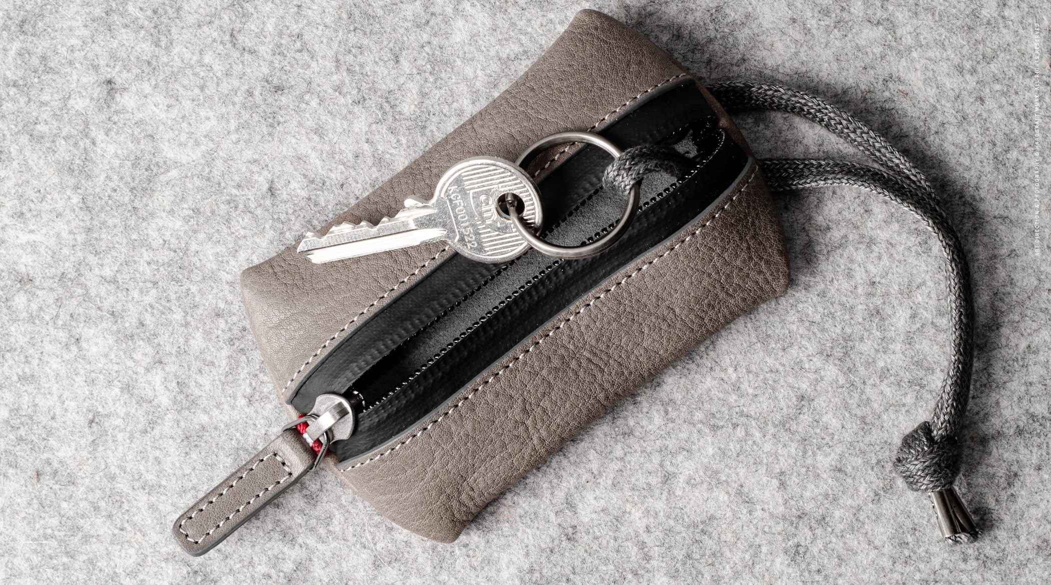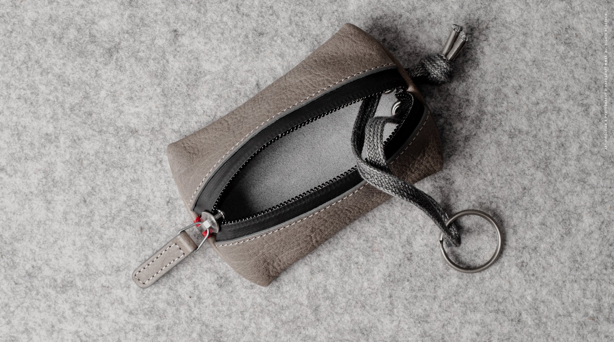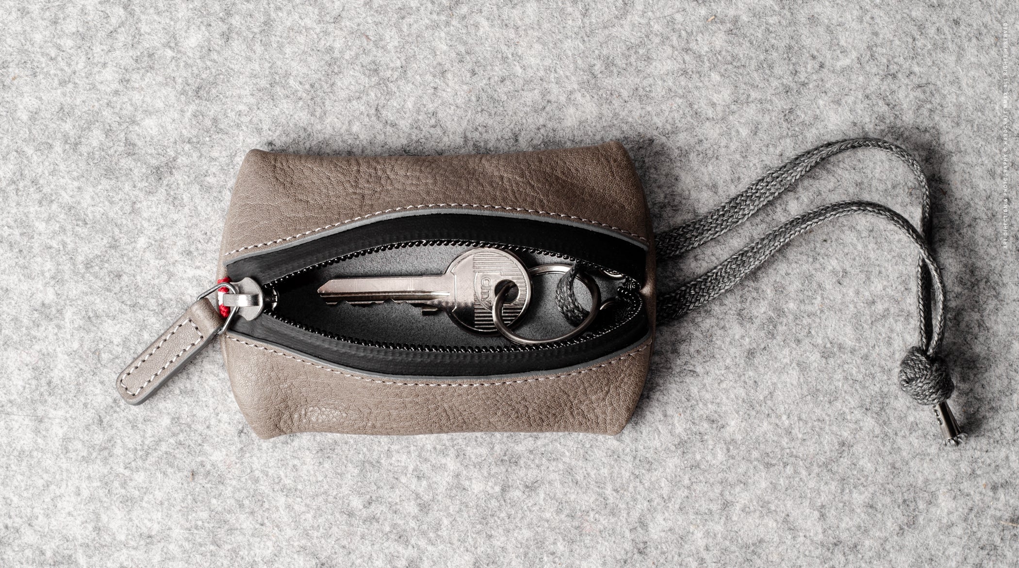 Es hat genau die richtige Größe (12 x 7 cm / 4,7 x 2,75”), um in Ihre Handfläche zu passen, aber groß genug, um einen guten Haufen Türöffner zu schließen. Gehen Sie voran und sehen Sie, wie gut dies in Ihre Hosentasche gleitet. Kein Kratzen, kein Verfangen von Fäden, kein Reißen. So sollten Schlüssel getragen werden. Um dieser Tasche einen besonderen Touch zu verleihen, haben wir uns für einen kontrastierenden schwarzen Reißverschluss und eine graue Baumwollkordel entschieden. Hergestellt in Italien.