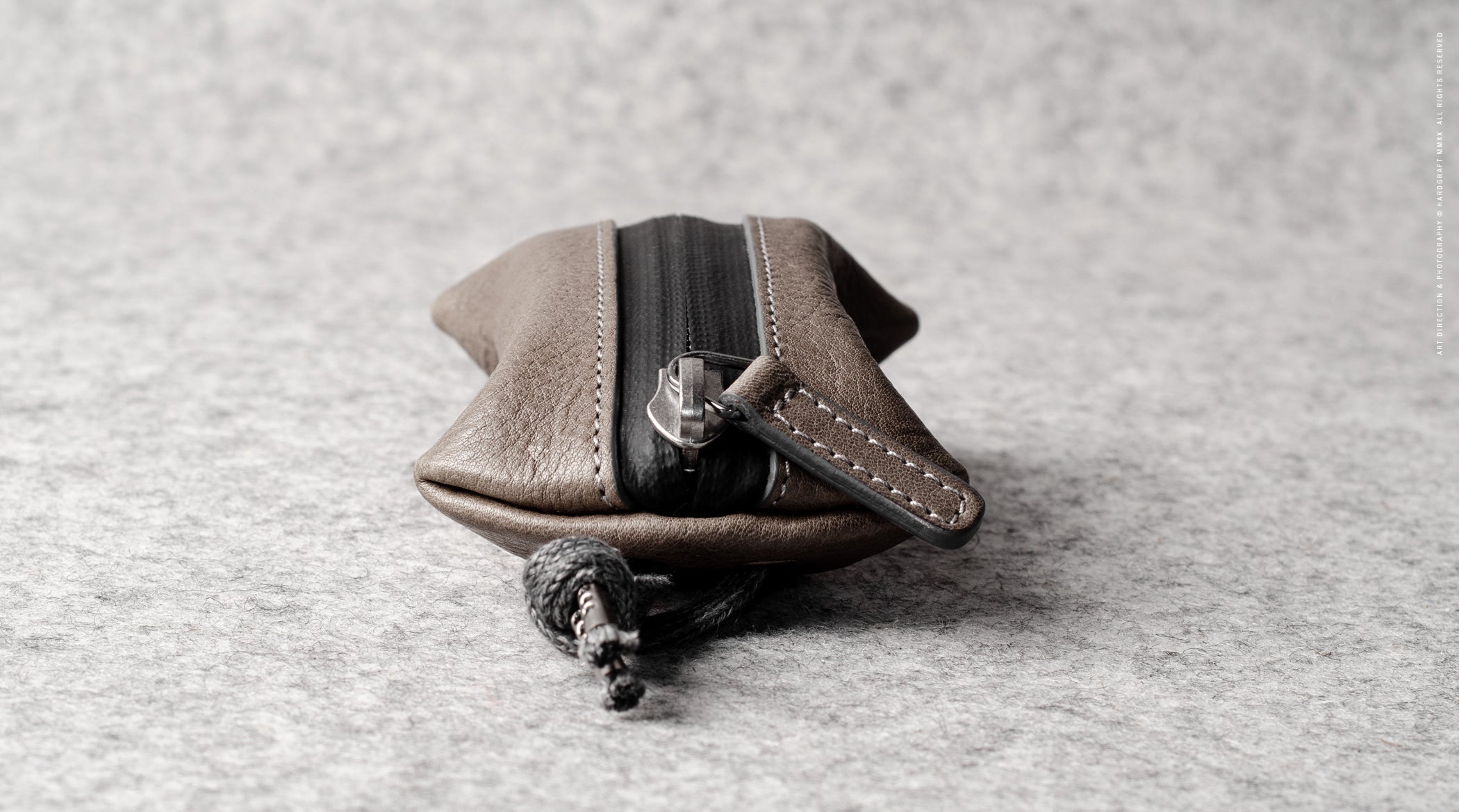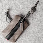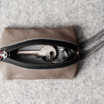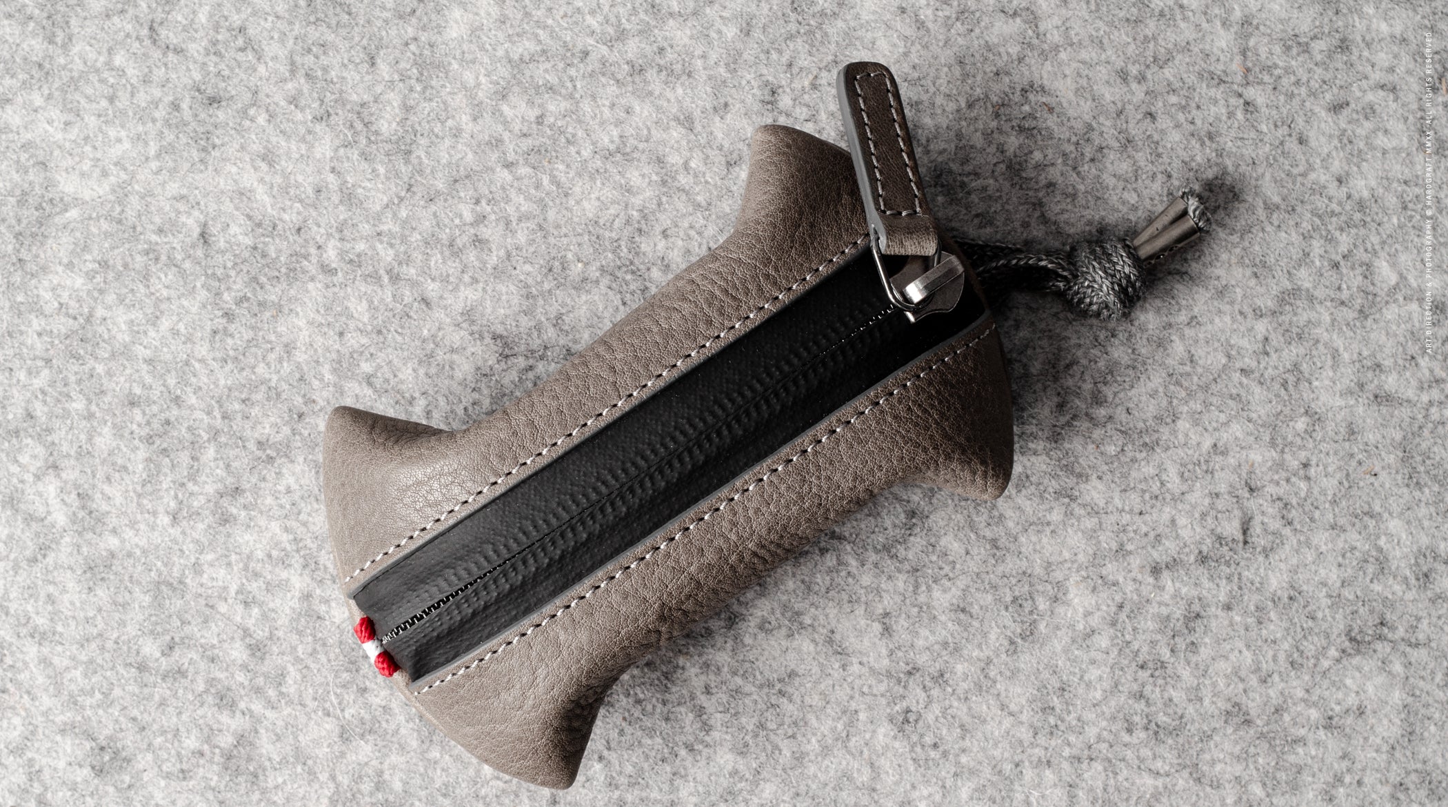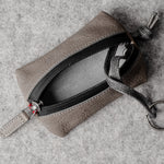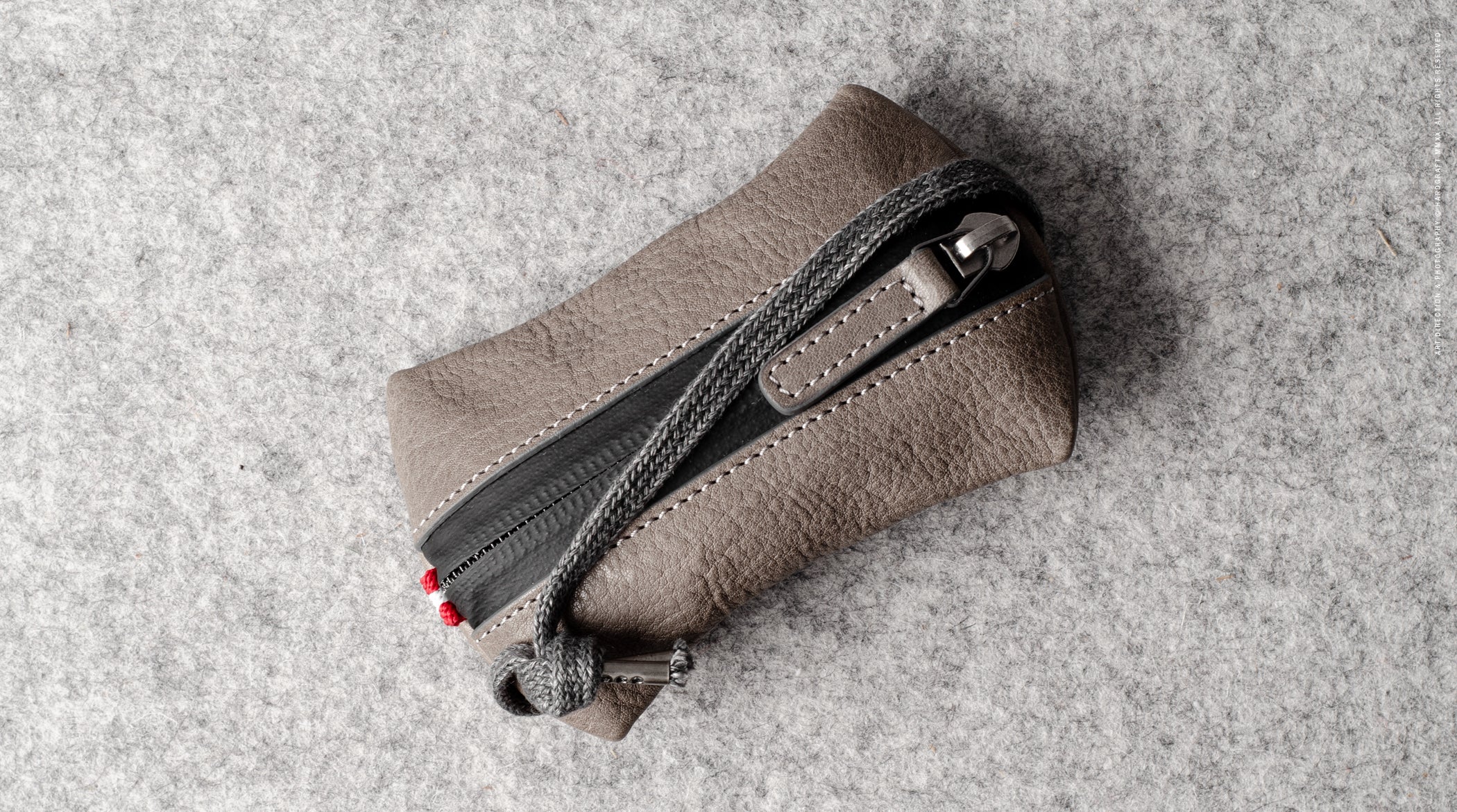 Es hat genau die richtige Größe (12 x 7 cm / 4,7 x 2,75”), um in Ihre Handfläche zu passen, aber groß genug, um einen guten Haufen Türöffner zu schließen. Gehen Sie voran und sehen Sie, wie gut dies in Ihre Hosentasche gleitet. Kein Kratzen, kein Verfangen von Fäden, kein Reißen. So sollten Schlüssel getragen werden. Um dieser Tasche einen besonderen Touch zu verleihen, haben wir uns für einen kontrastierenden schwarzen Reißverschluss und eine graue Baumwollkordel entschieden. Hergestellt in Italien.