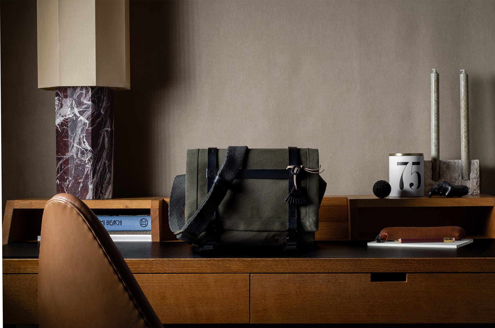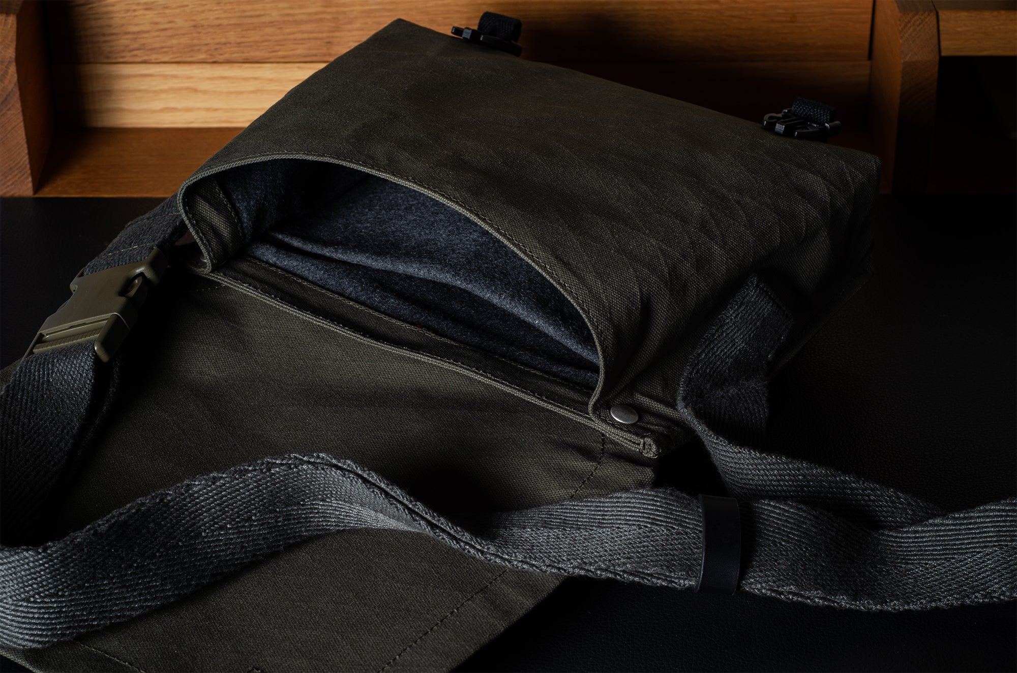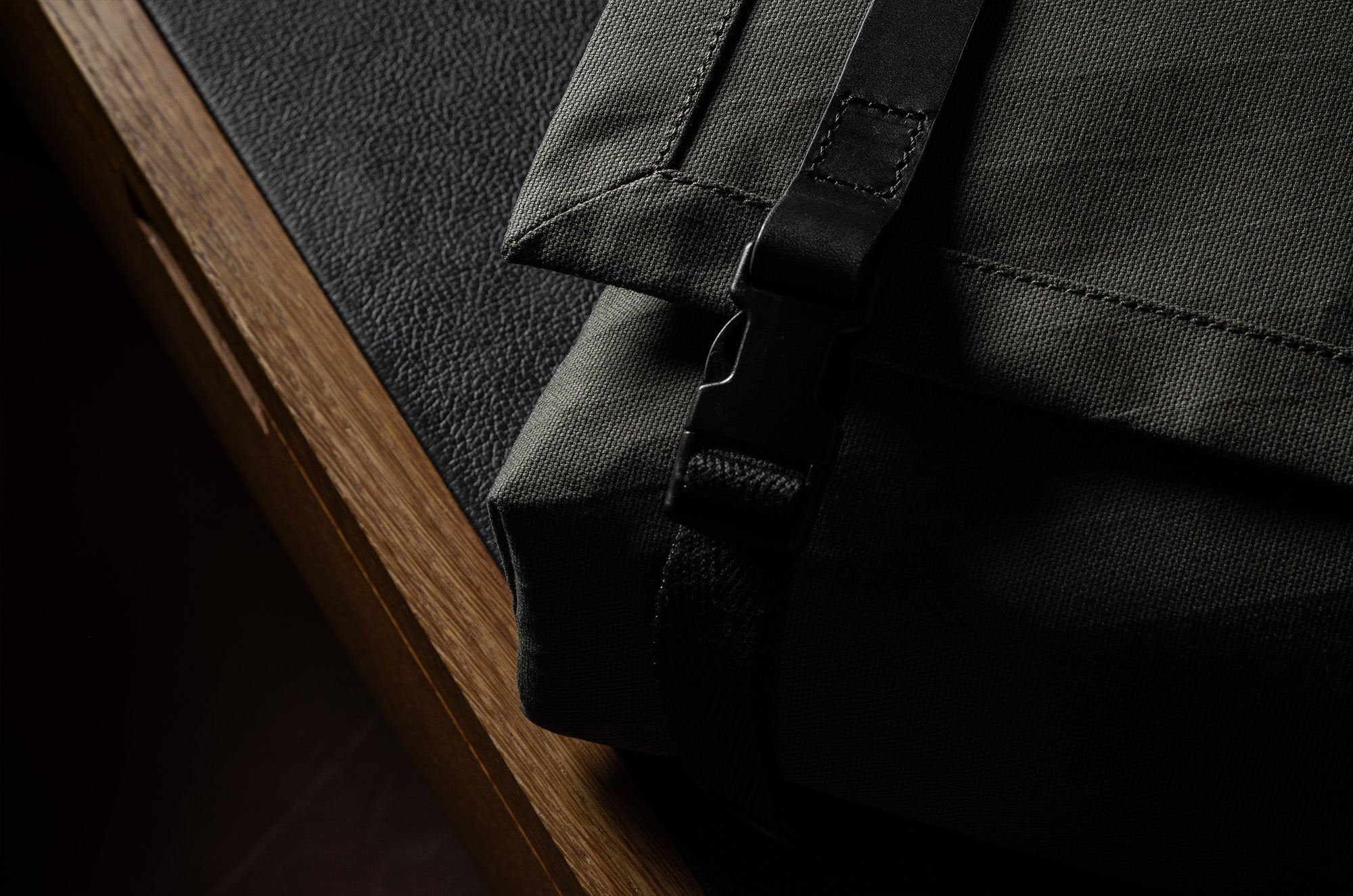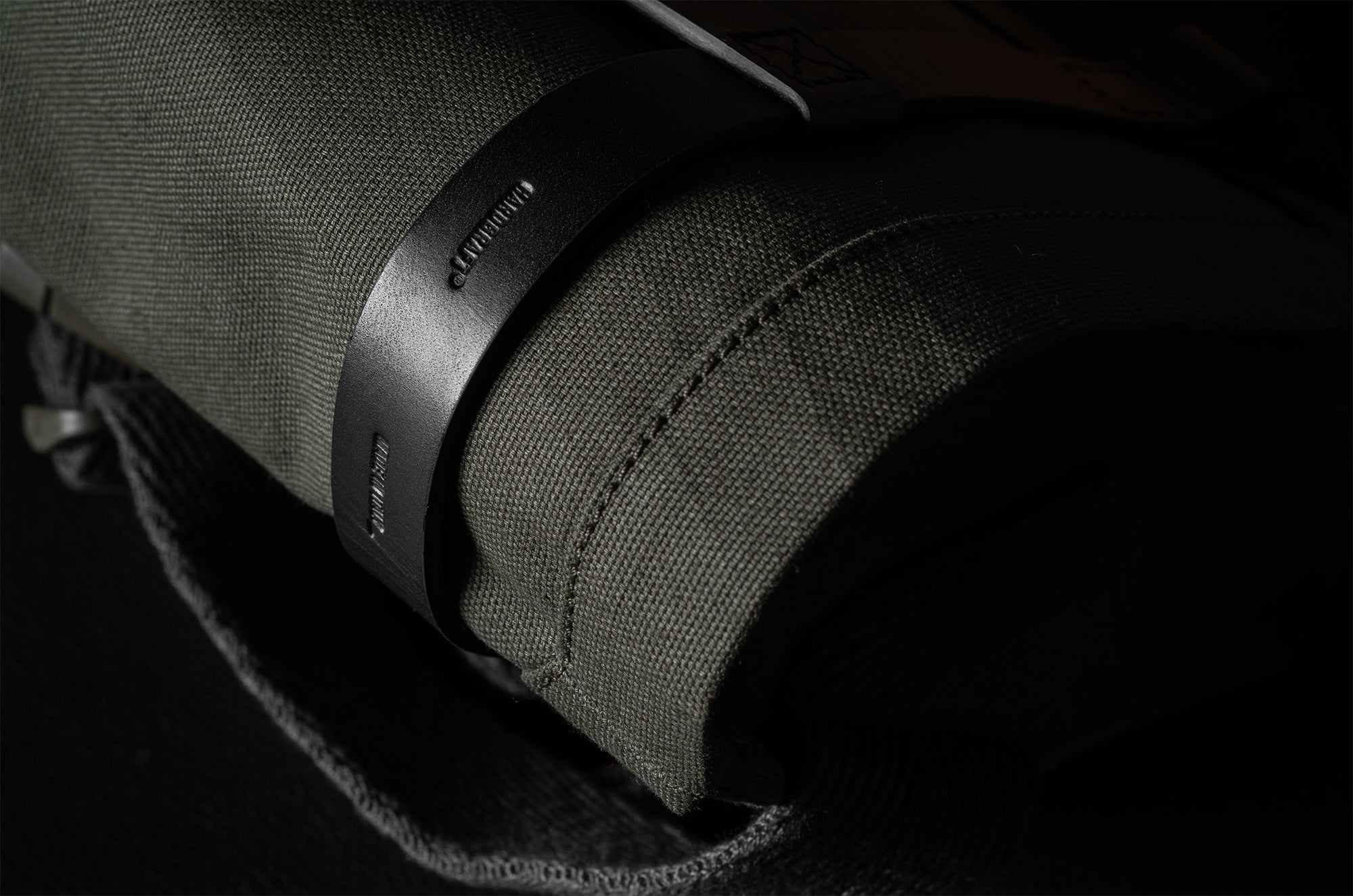 Inspired by advanced sailcloth technology this layered material is durable, resilient, weatherproof and high-tech. The natural organic duck cotton face is combined with a double layer laminate construction to achieve ultimate strength, lightness and weatherproofness. 100% climate neutral.