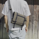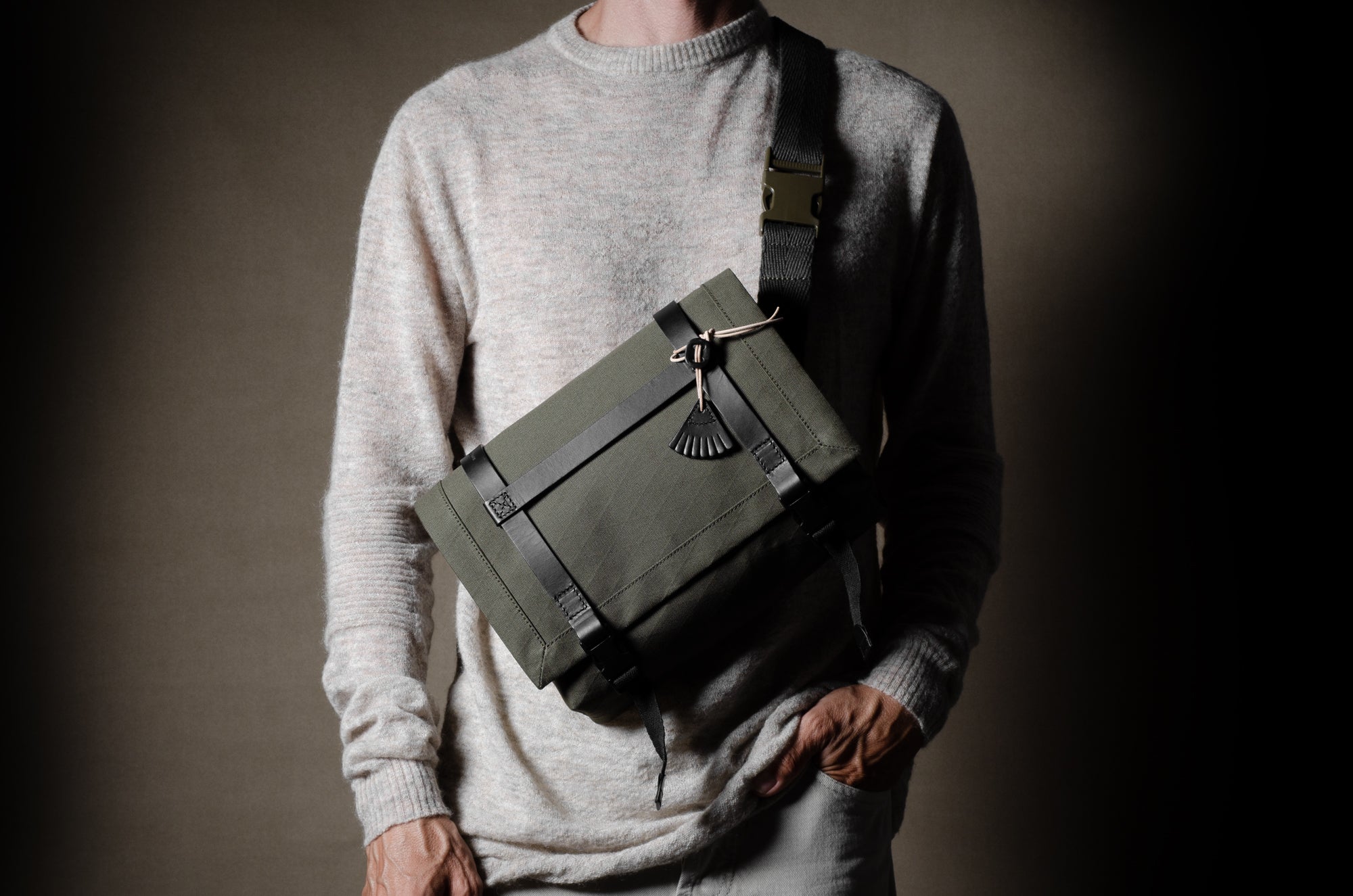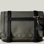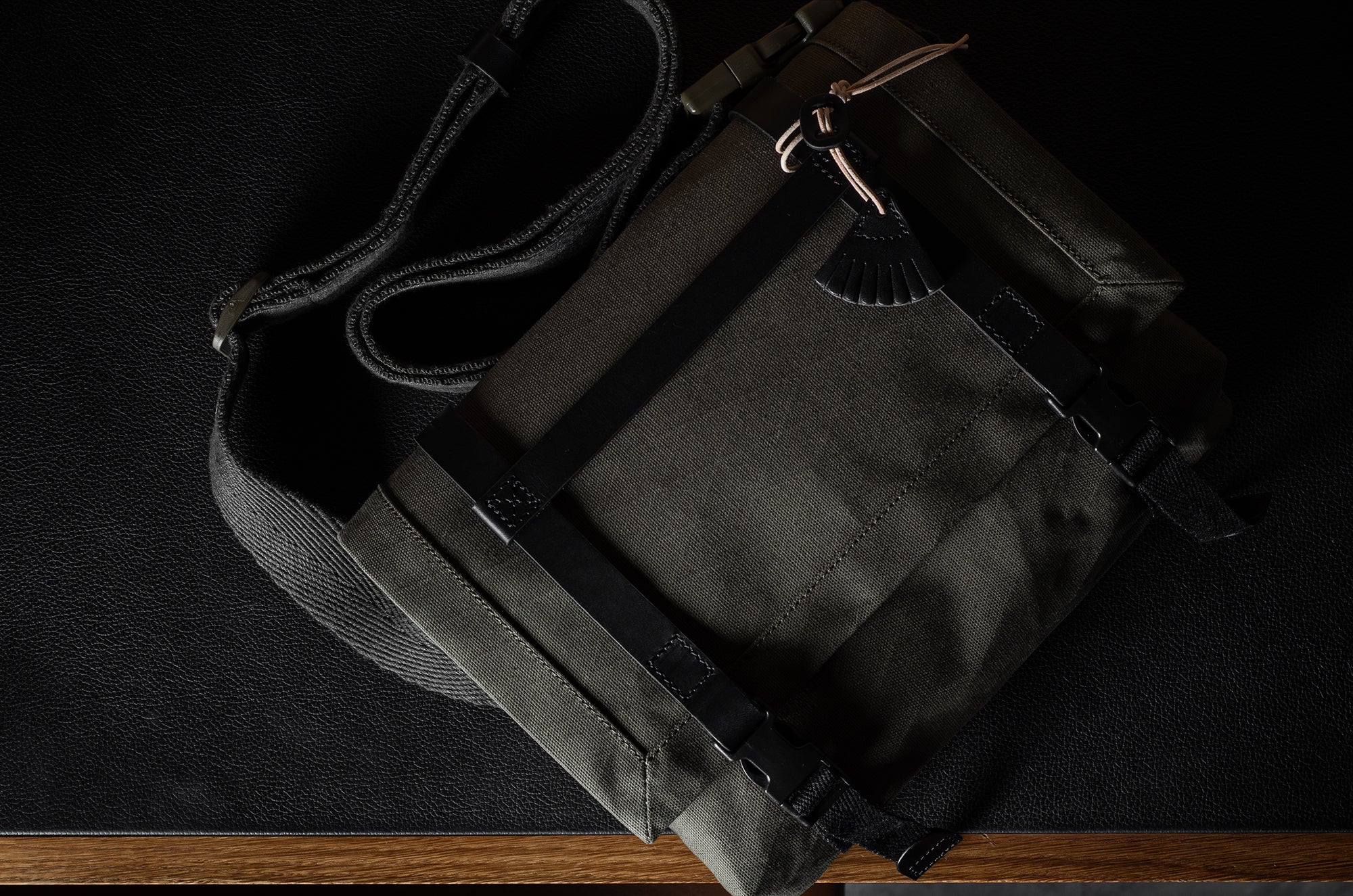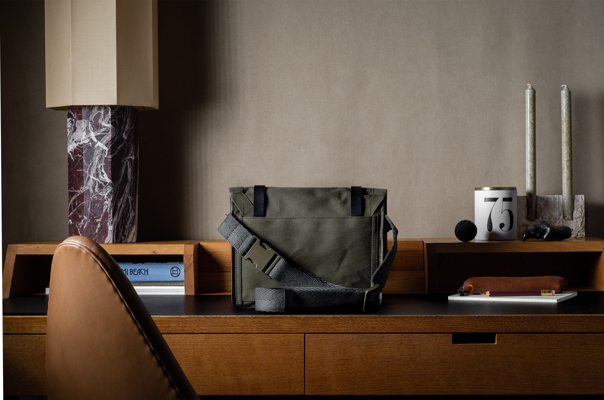Inspired by advanced sailcloth technology this layered material is durable, resilient, weatherproof and high-tech. The natural organic duck cotton face is combined with a double layer laminate construction to achieve ultimate strength, lightness and weatherproofness. 100% climate neutral.