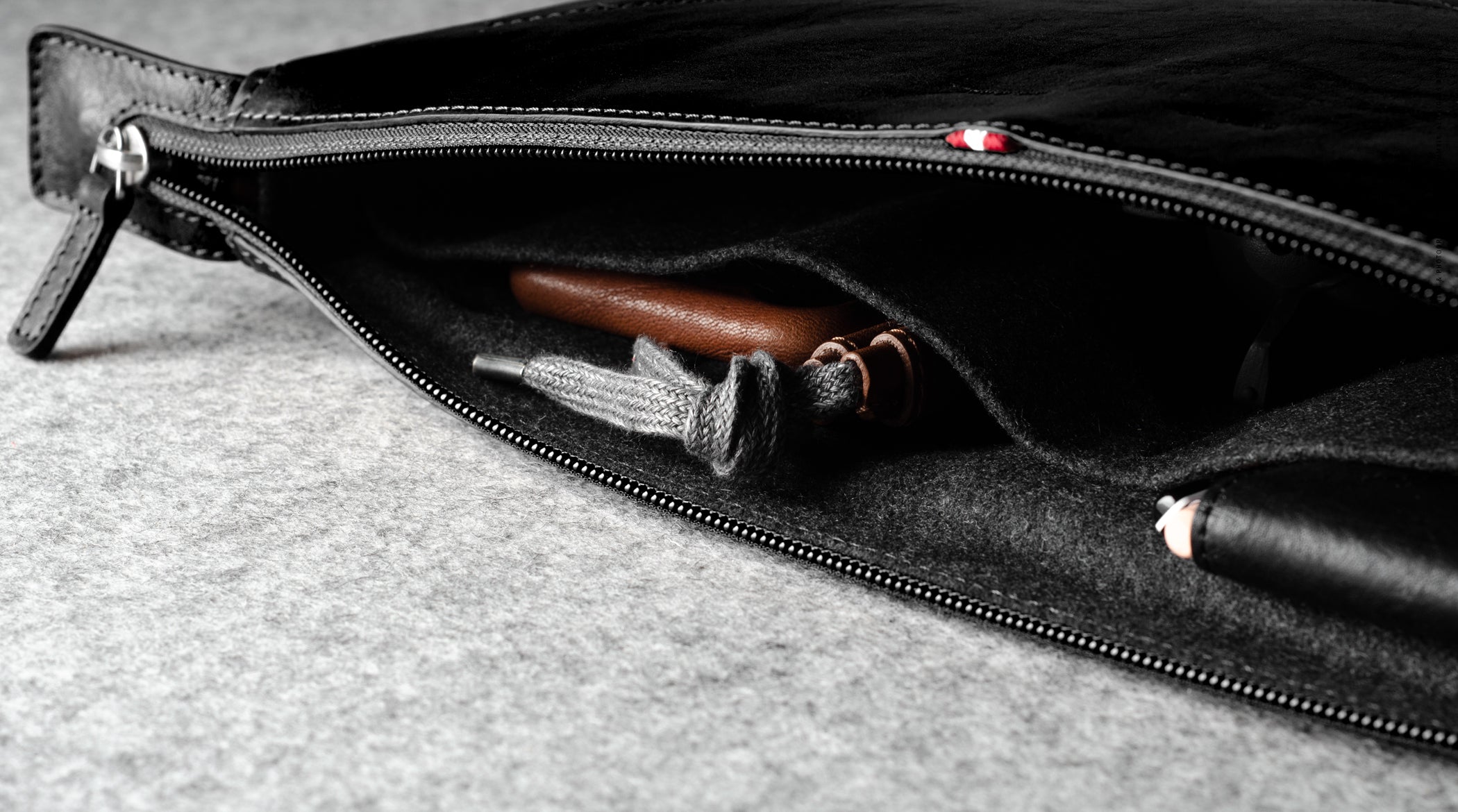 Soft by nature our luxurious Italian wool blend lining adds a tactile and lush interior that almost feels too good to hide away inside the bag. Our natural wool gets a little support from it's stronger and very resilient man-made fibres to stand up to whatever you throw into it.