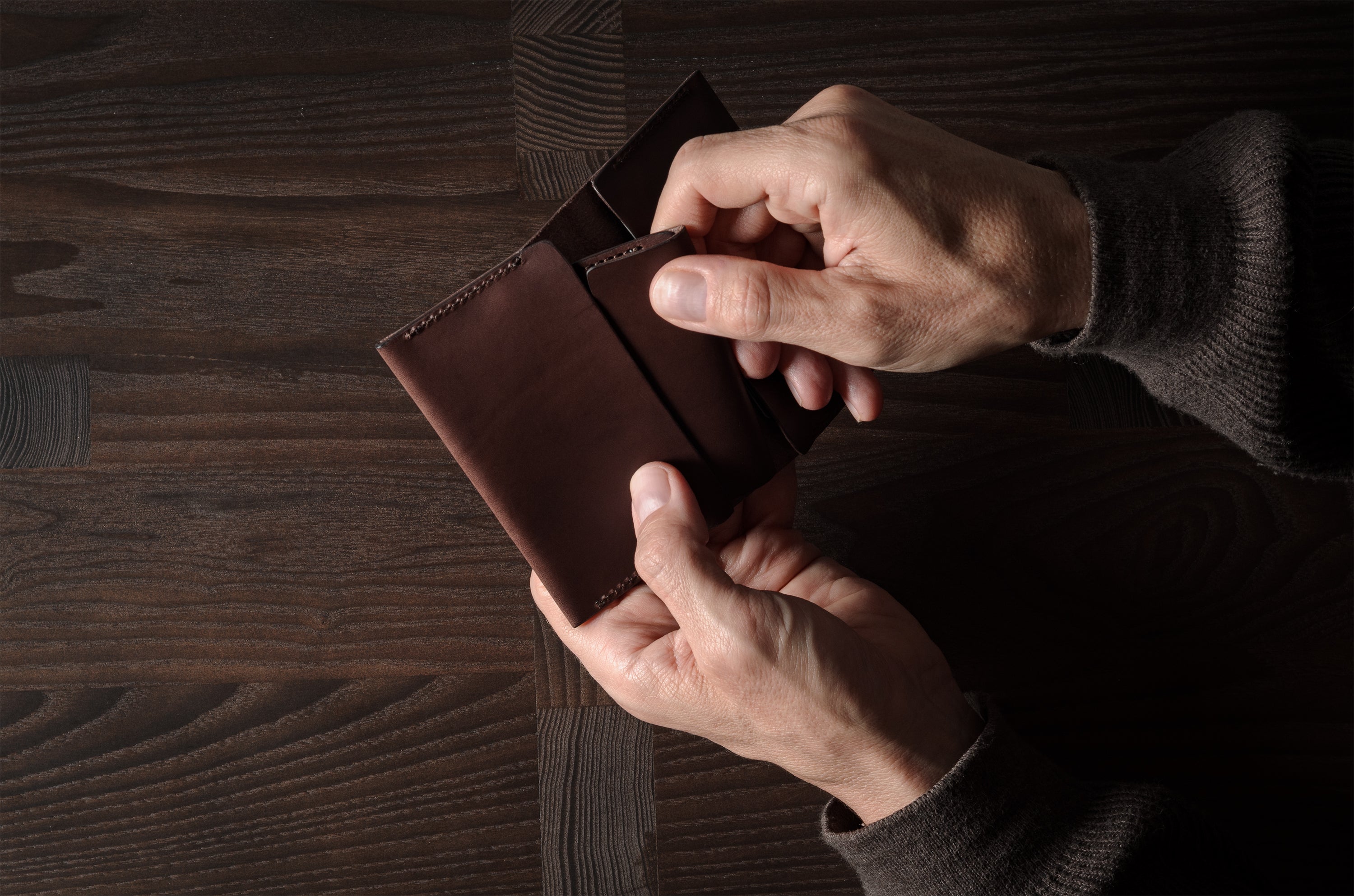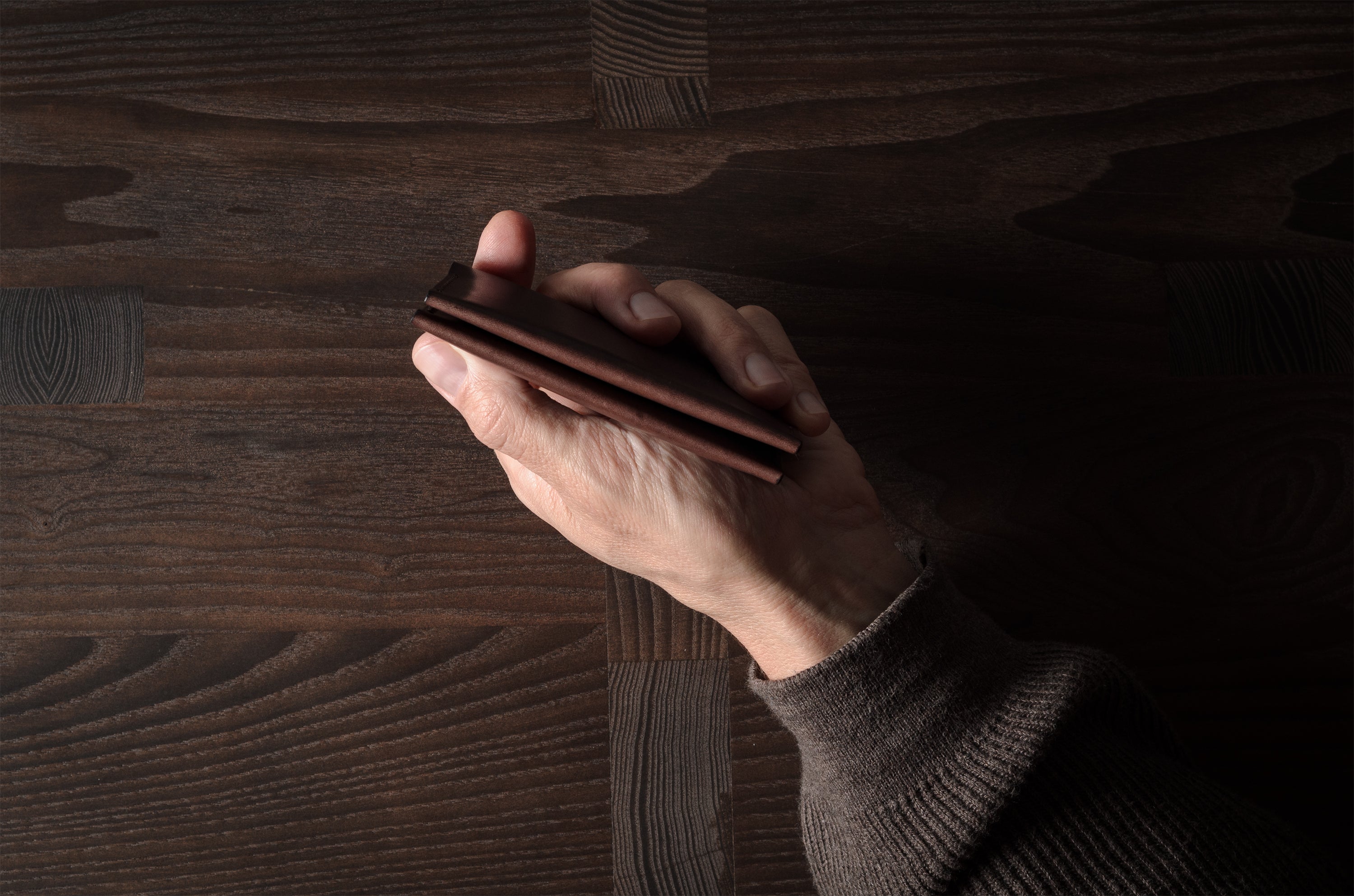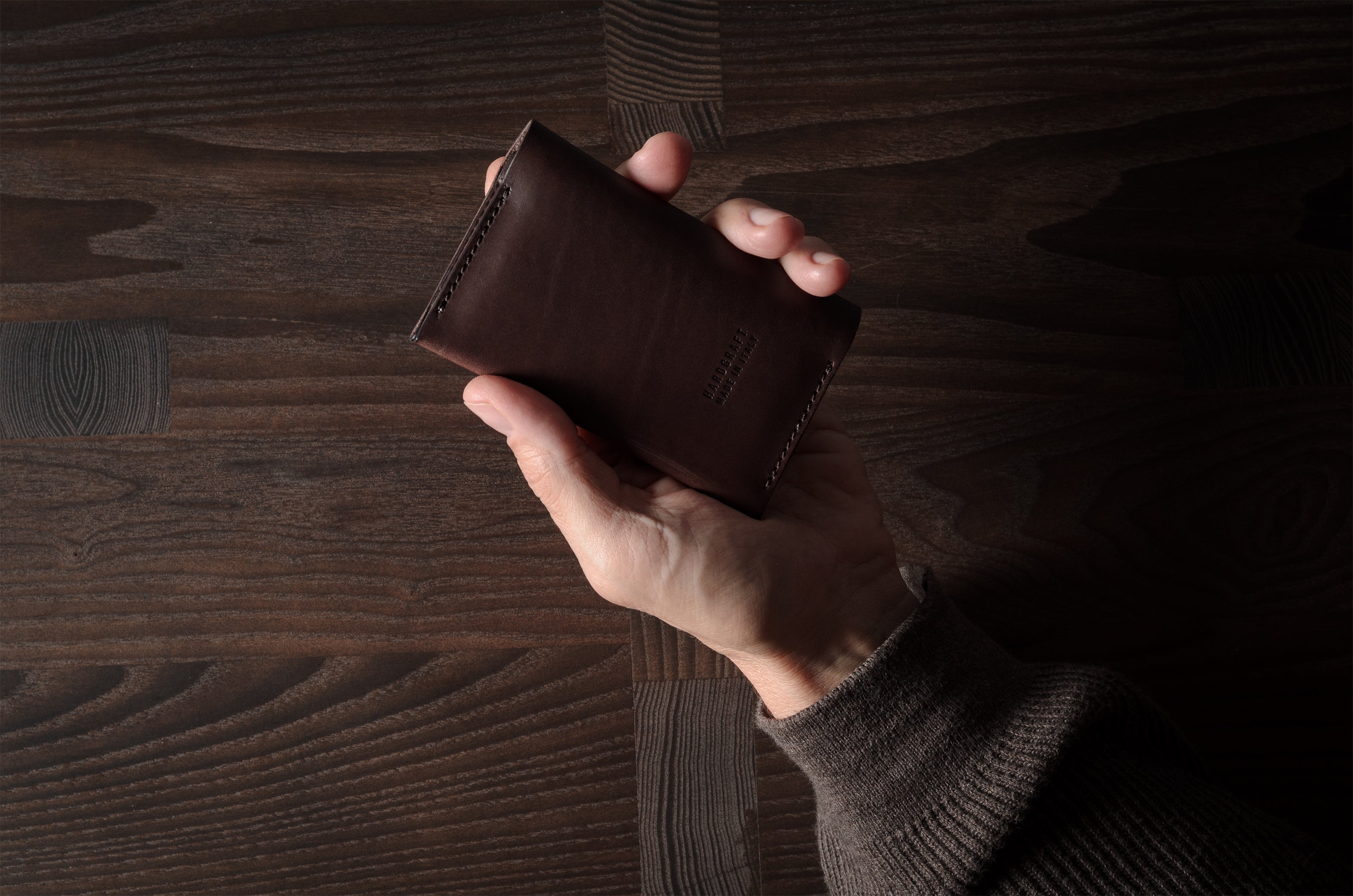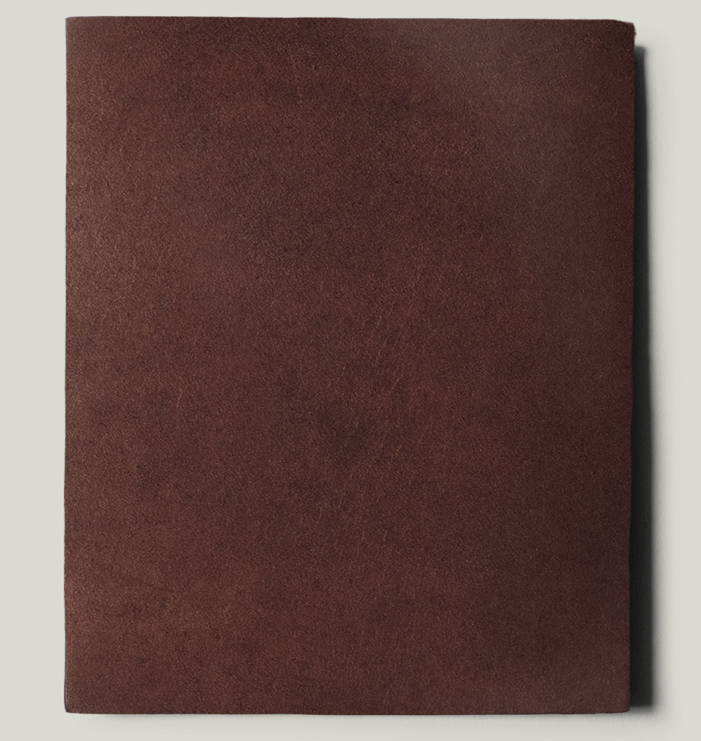 Deep Brown is a full-grain vegetable-tanned leather from Tuscany. Only the best Vachetta shoulder hides are selected. An exceptional hide that contains natural markings and blemishes, which makes every product unique. Quality, thick but subtle leather that evolves with time. It’s sensitive to your surroundings and the waxy top layer means it shows small scratches which can be buffed out with a damp cloth or a quick rub with a finger.