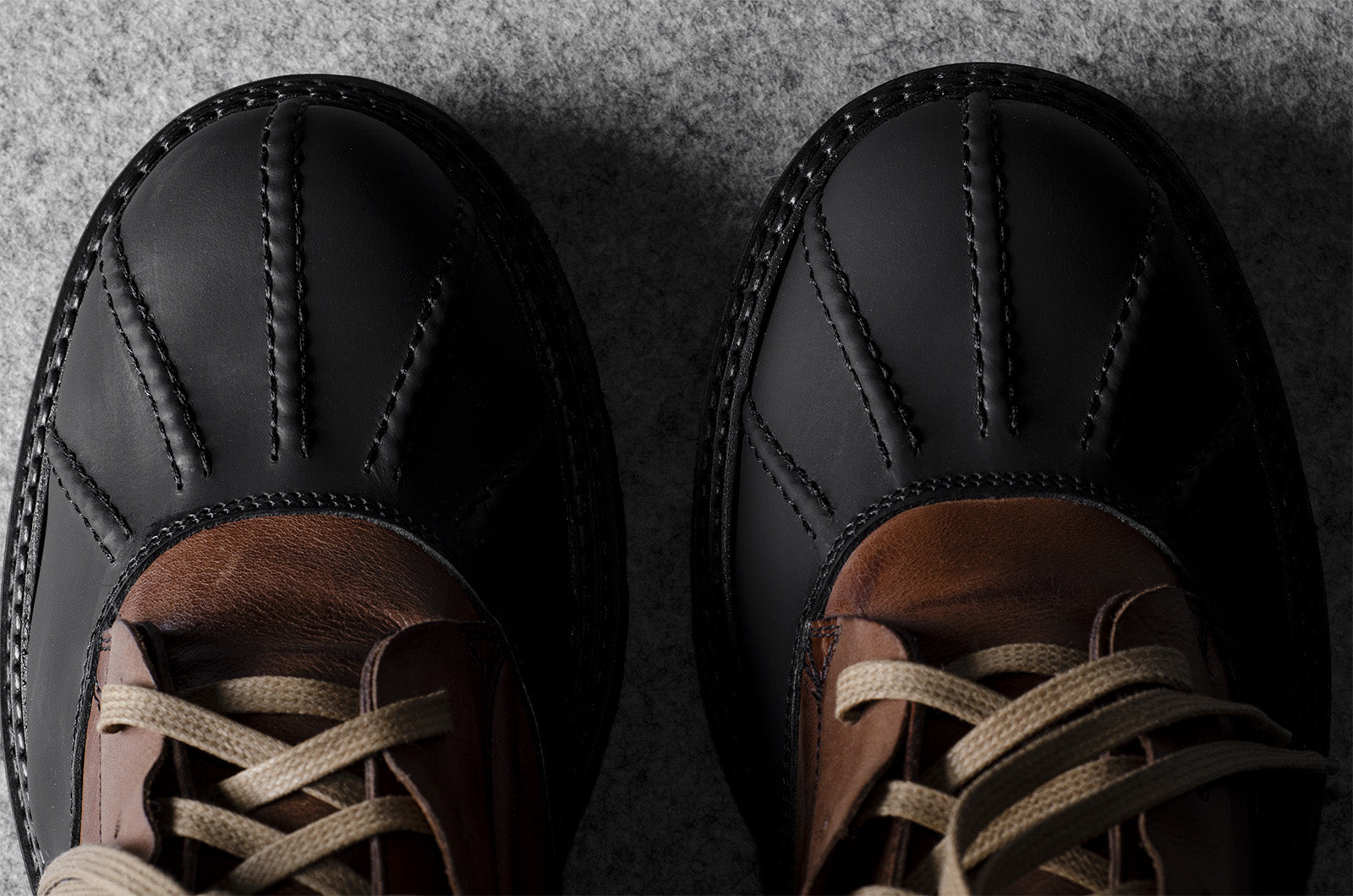 When shoes become wet from outdoor use, dry with a soft, clean cloth and let them dry in natural/warm environment. Should the shoes be so wet that they are damp on the inside, we recommend packing the inside of the shoes with newspaper to help absorb water. Do not dry shoes in front of a heater or in direct sunlight as this may damage the shoes. When drying, avoid contact with darker materials as this may cause some color to leak or transfer onto the shoes.