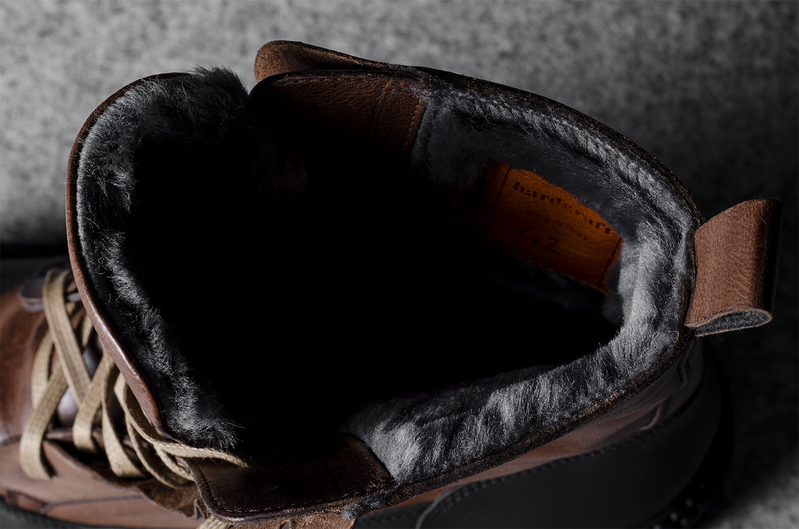 Our footwear does not come fully waterproofed, we recommend treating your shoes with a waterproof spray before the first wear. Specialist sprays are available for a variety of different leather types. If in doubt take the shoes with you when purchasing a shoe care product and ask for advice as to which product is most suitable.